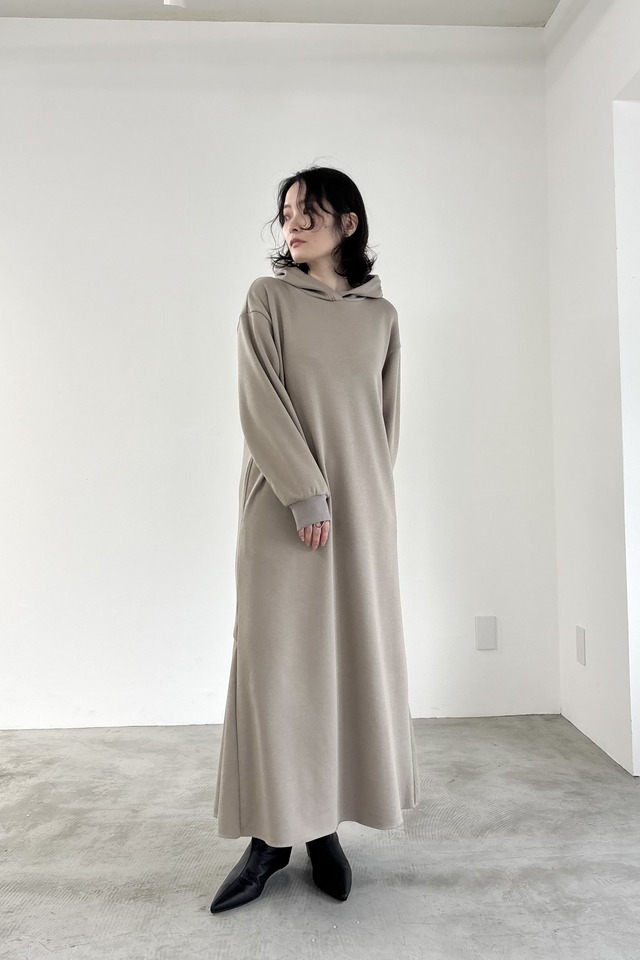 【COMMENT】 毛布に包まれるような、柔らかな裏起毛ボンバーヒート素材のパーカーワンピ―ス。アクティブな動きにも対応できるストレッチの効いた着心地です。リラックスできるシルエットで、後ろ身頃はフレアスタイルに仕上げました。1枚で暖かくこなれ感のあるトレンドレスなワンピースです。 ------------------------------------------------ 【MATERIAL】 (本体)ポリエステル64% 綿32% ポリウレタン4% (別布) ポリエステル70% 複合繊維(ポリエステル)30% (リブ) 綿95% ポリウレタン5% ------------------------------------------------ 【SIZE】 総丈:119cm バスト:105cm 着用モデル col.A,C:162cm/col.D:153cm 生地の厚さ/中厚 裏地/有り ポケット/有り 光沢/無し 透け感/無し 伸縮性/有り 洗濯お手入れ/可能(手洗い洗濯) *商品について 画像の商品はサンプル品にて撮影を行っております。実際の商品と仕様・加工・サイズが若干異なる場合がございます。予めご了承下さい。 *カラーについて お使いのデバイスの設定、撮影時のライティング、商品をご覧になっている際の照明等閲覧環境により実際の色味と異なって見える場合がございます。 *商品の包装について 細心の注意を払って包装しておりますが、通販の特性上、商品到着時に畳みシワがついている場合がございます。予めご了承下さい。 ------------------------------------------------