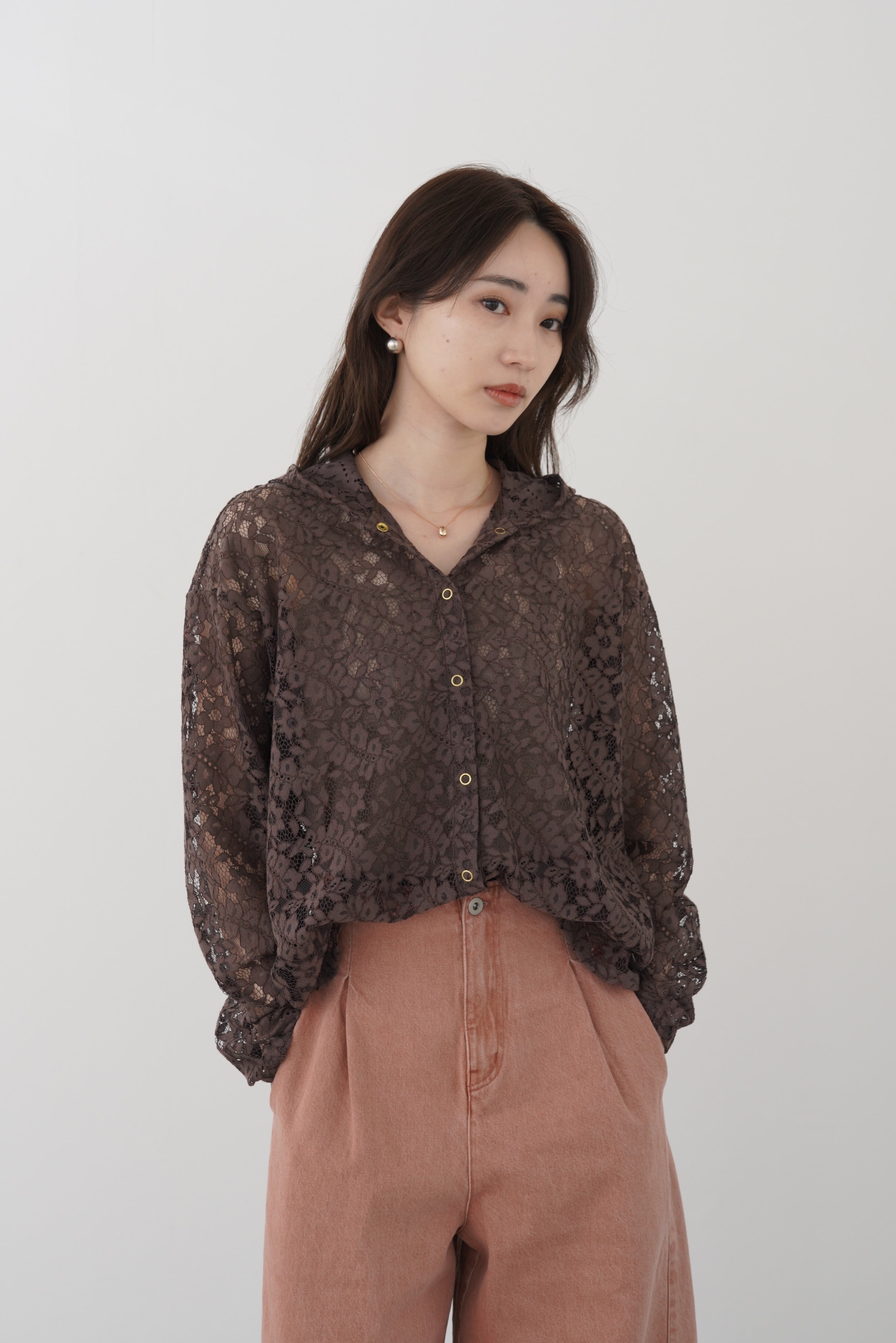 ドレッシーなフワラーレース素材をカジュアルなフーディ型に仕立てました。冷房や日除けの羽織としてはもちろん、ジャケットのインナーにも使える、新しい感覚のレースアイテムです。