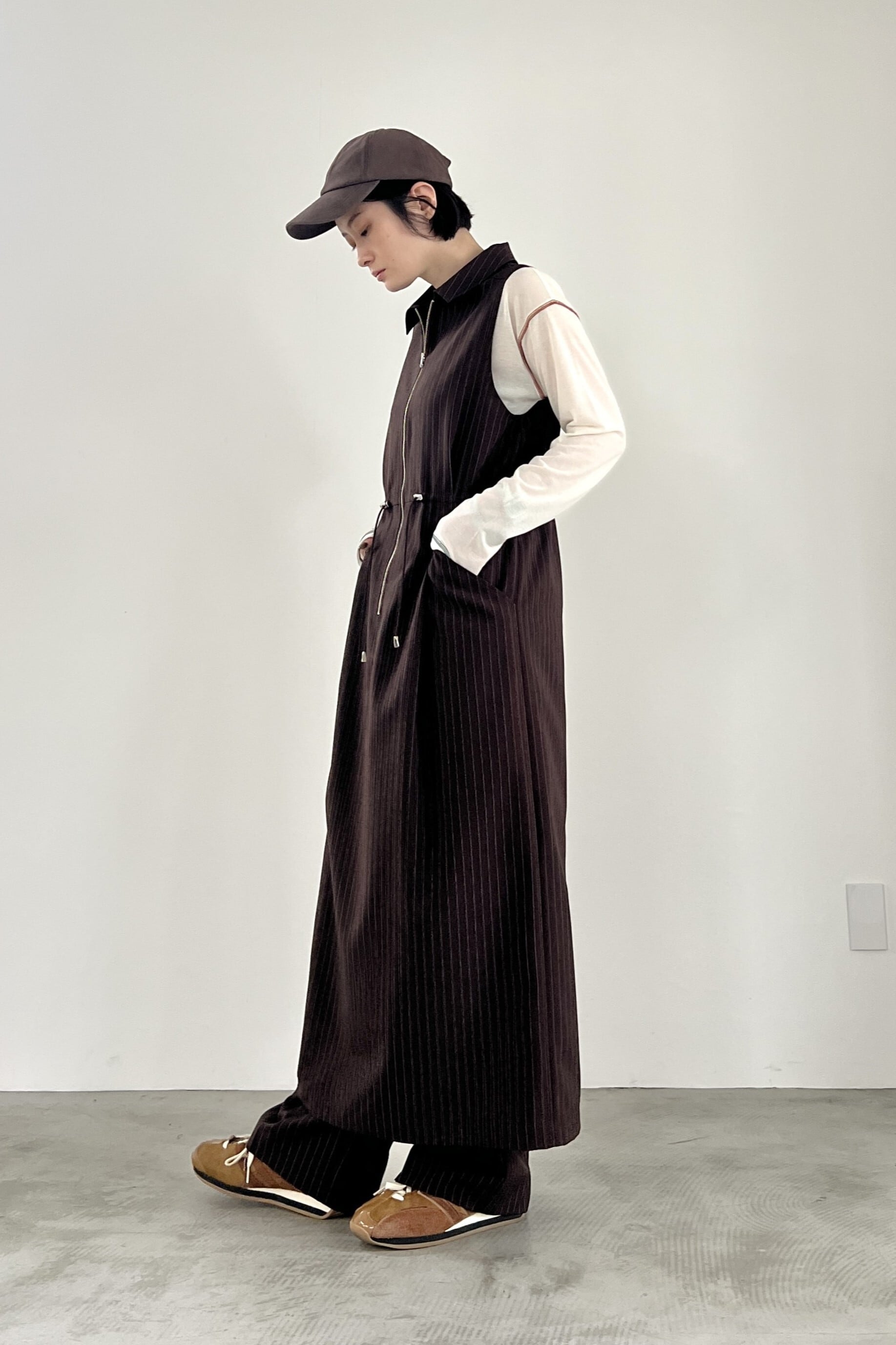 Iラインシルエットのフロントファスナーワンピース。ウールのような高級感がありながらも、イージーケア性、防しわ性が備わった梳毛(そもう)調のトロ素材を使用。女性らしいシルエットながらも、衿付きにすることでハンサムさをプラス。ドローコードでウエストを絞ると更にスタイルアップが叶います。