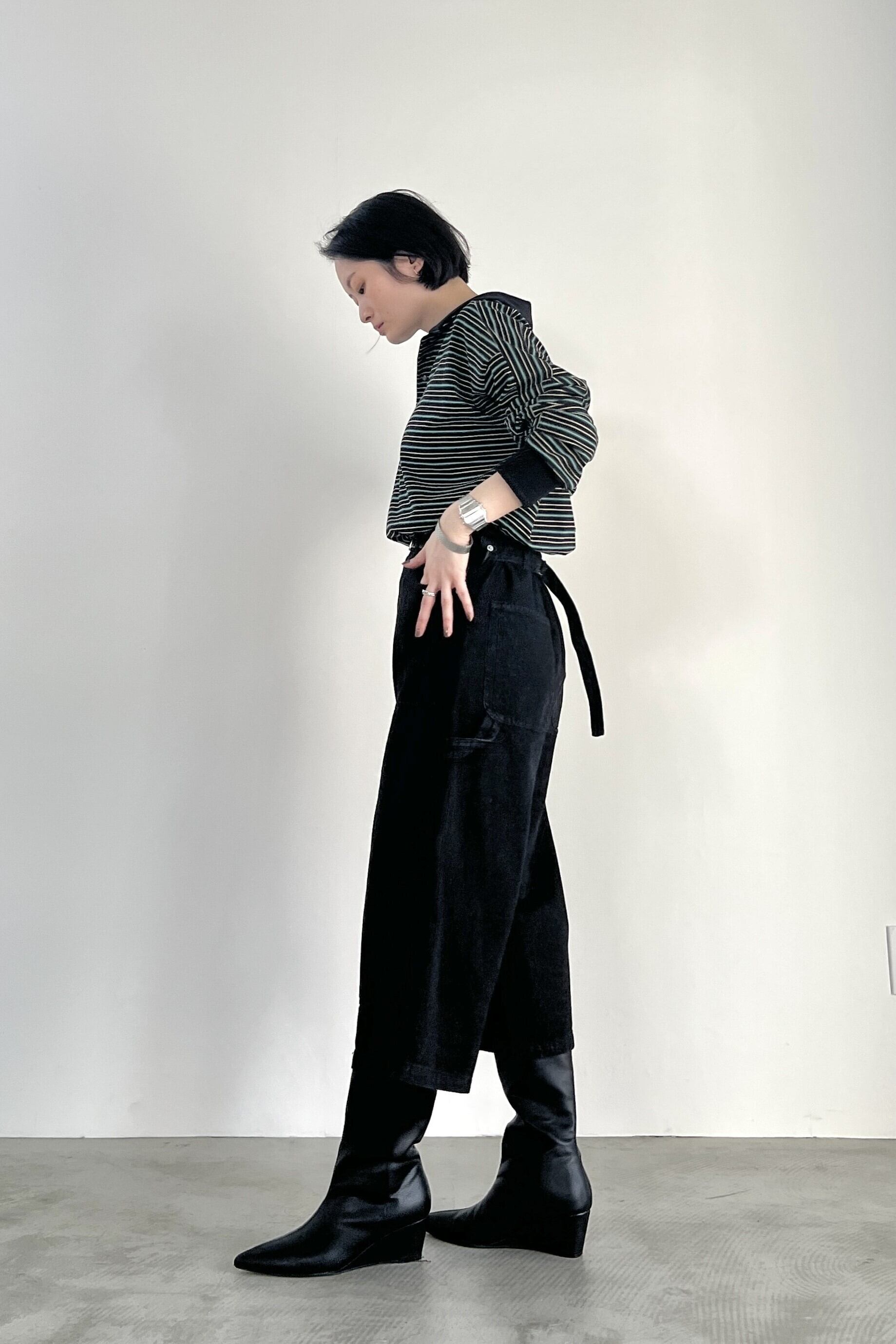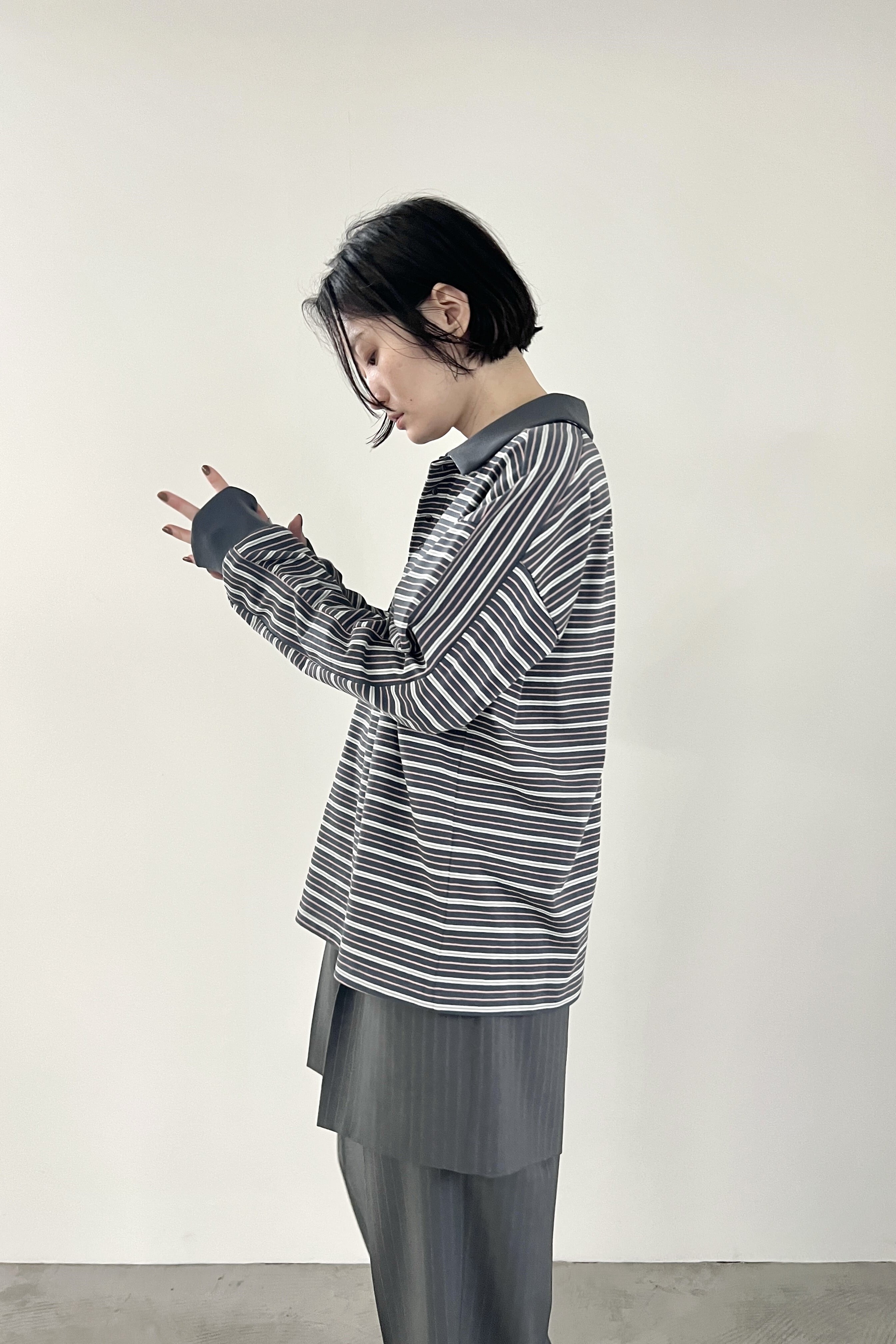 マルチボーダー天竺を使用したラガーシャツ。大人が着やすい落ち着いた配色の細ボーダー柄で、スタイリングに鮮度をプラスしてくれるアイテムです。艶のあるブラックニッケルのドットボタン、袖のストライプ柄がアクセントになっています。