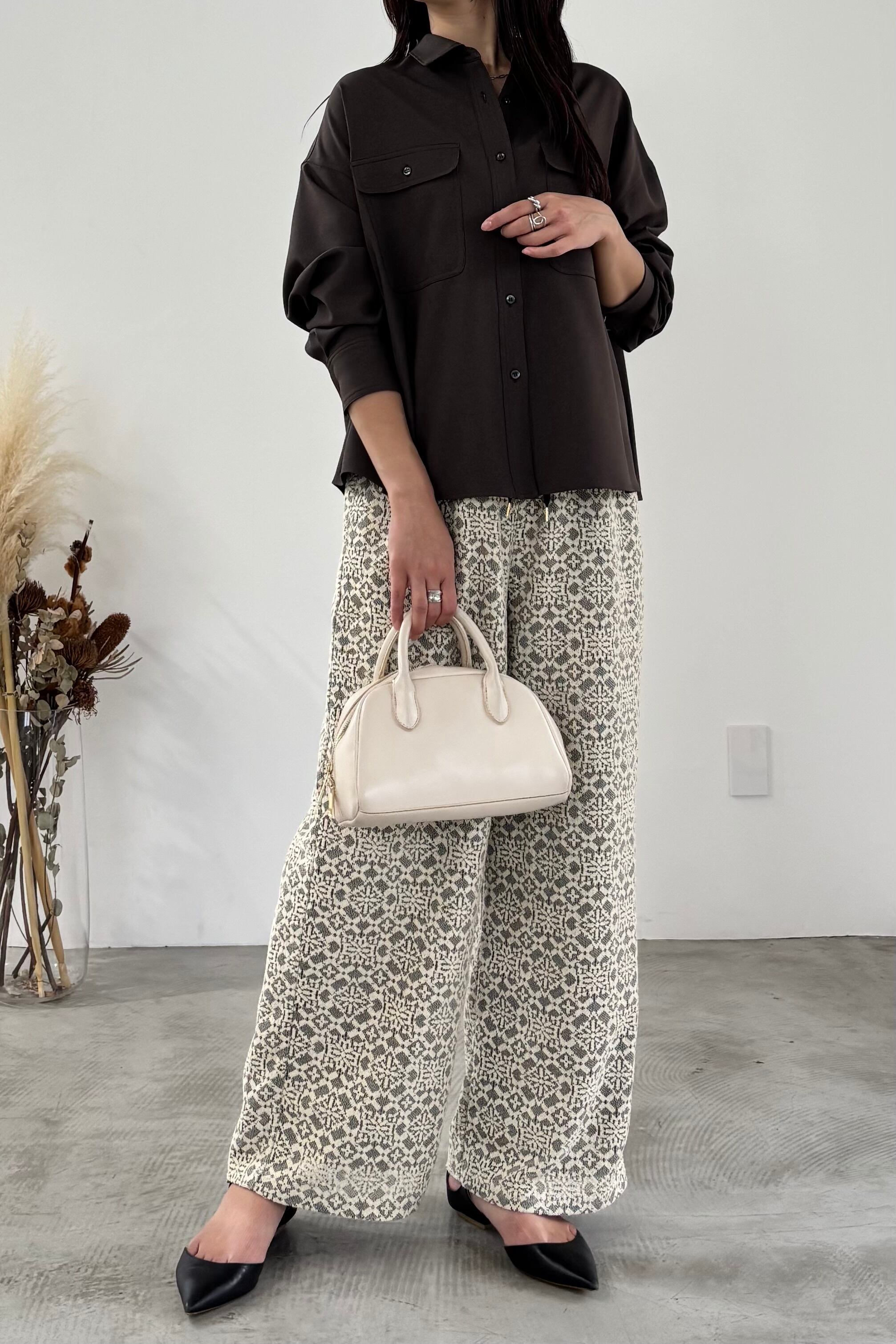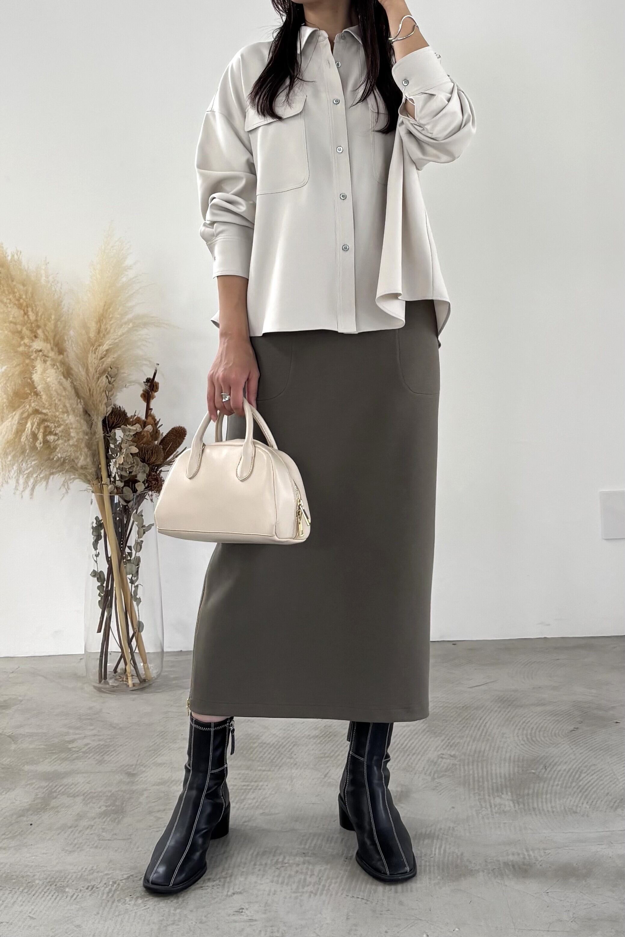 ソフトで落ち感のある風合いと上品な表面感で、カジュアルながら女性らしさを併せ持つワークディテールシャツ。ゆとりのあるサイズとすっきりした着丈で羽織りにも使える万能アイテムです。