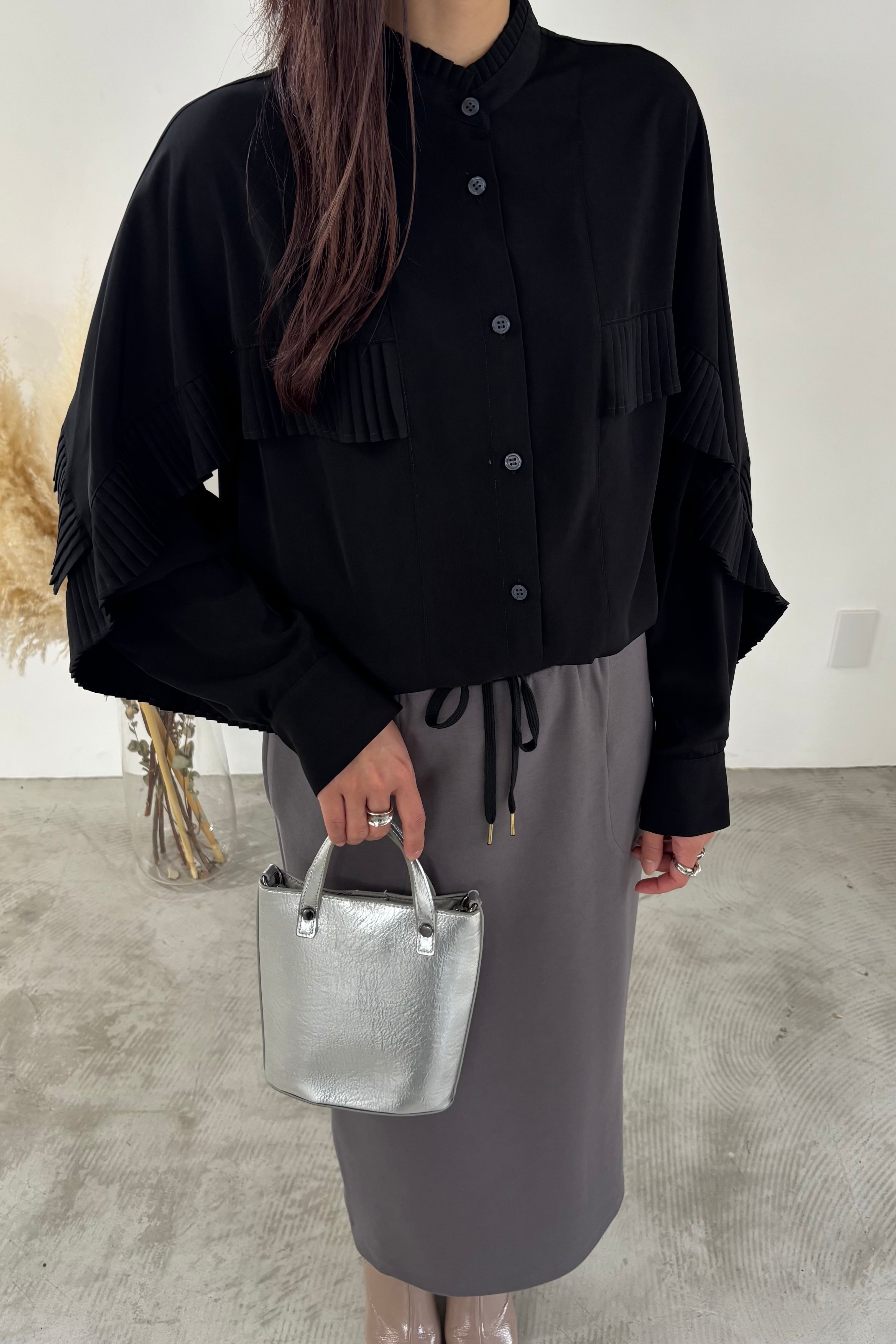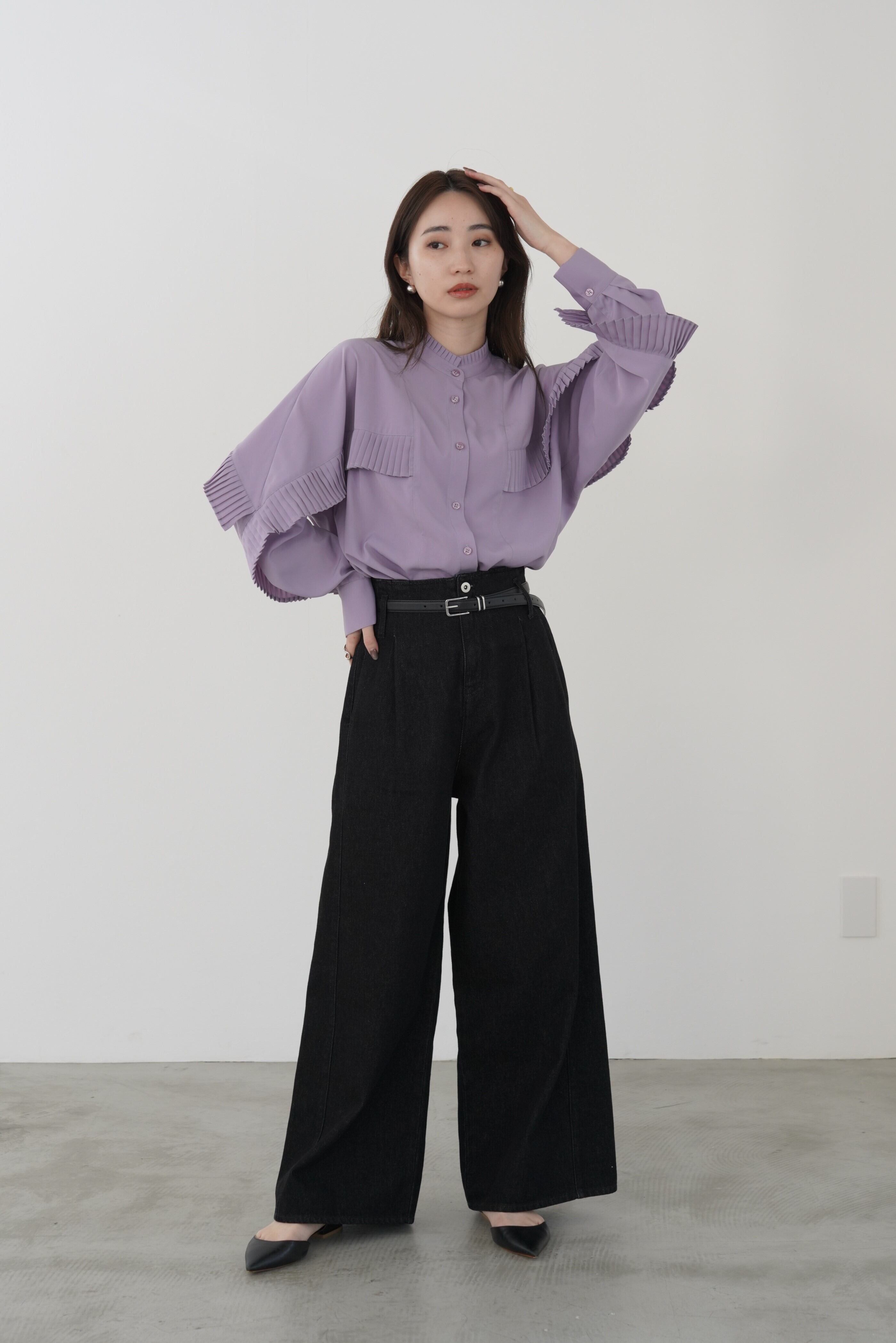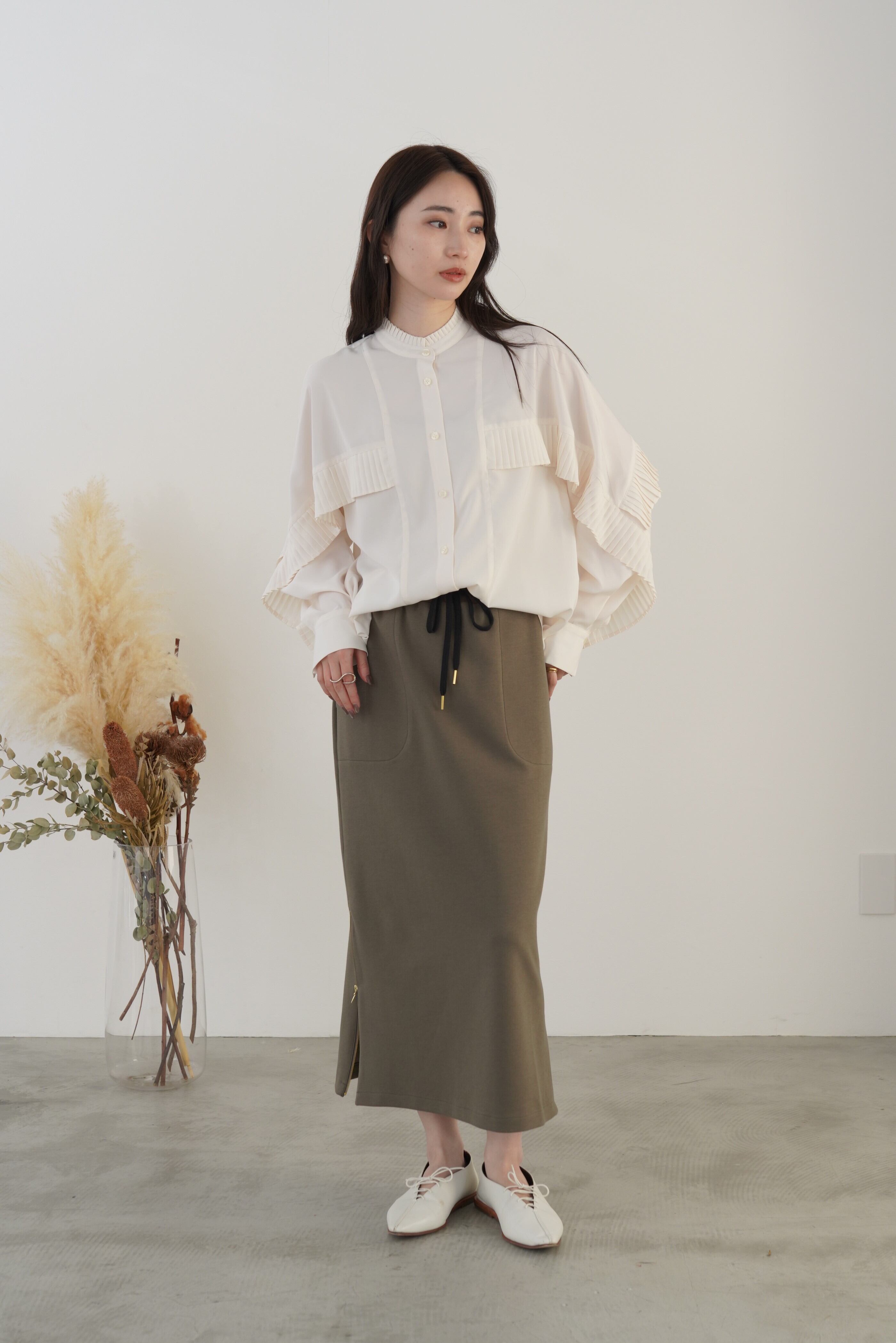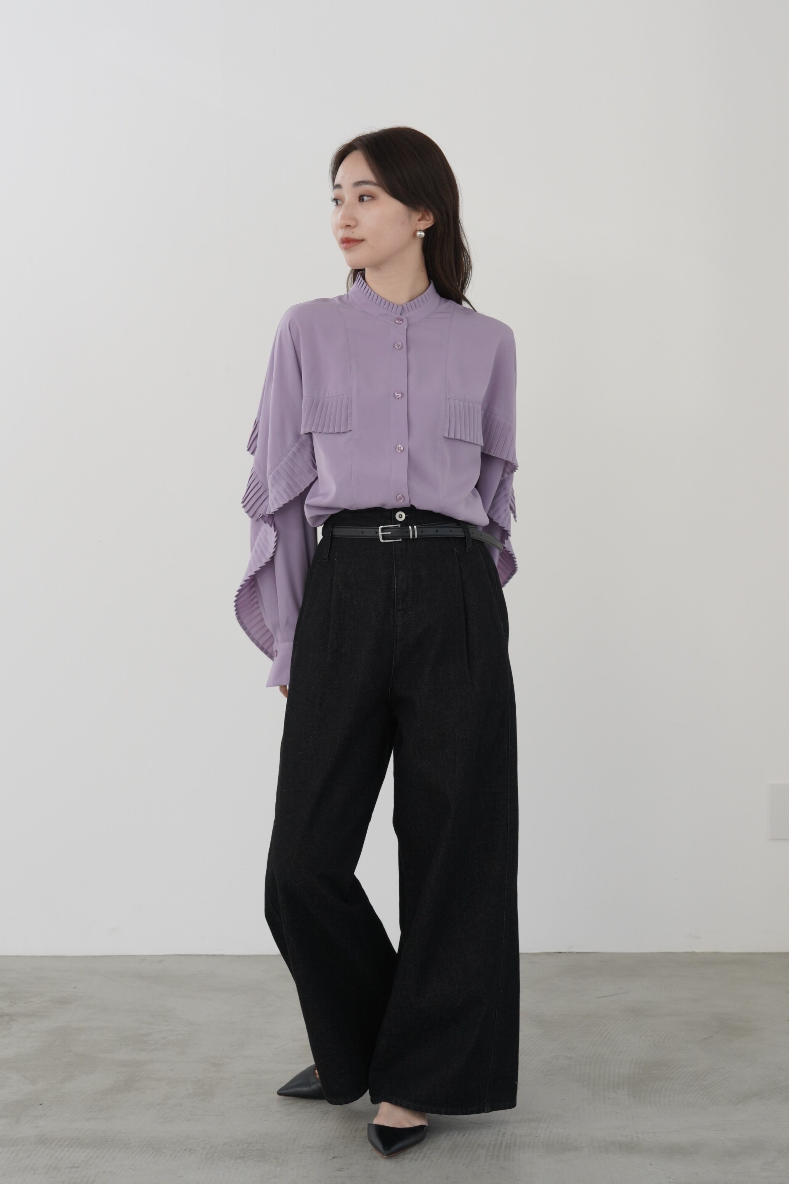 身頃~袖に施したタックプリーツが目を惹く1枚。微光沢のあるきれいなデシン生地で、大人のフェミニンブラウスに仕上げました。デニムやスラックスなど、マニッシュな雰囲気のボトムとのスタイリングもおすすめです。