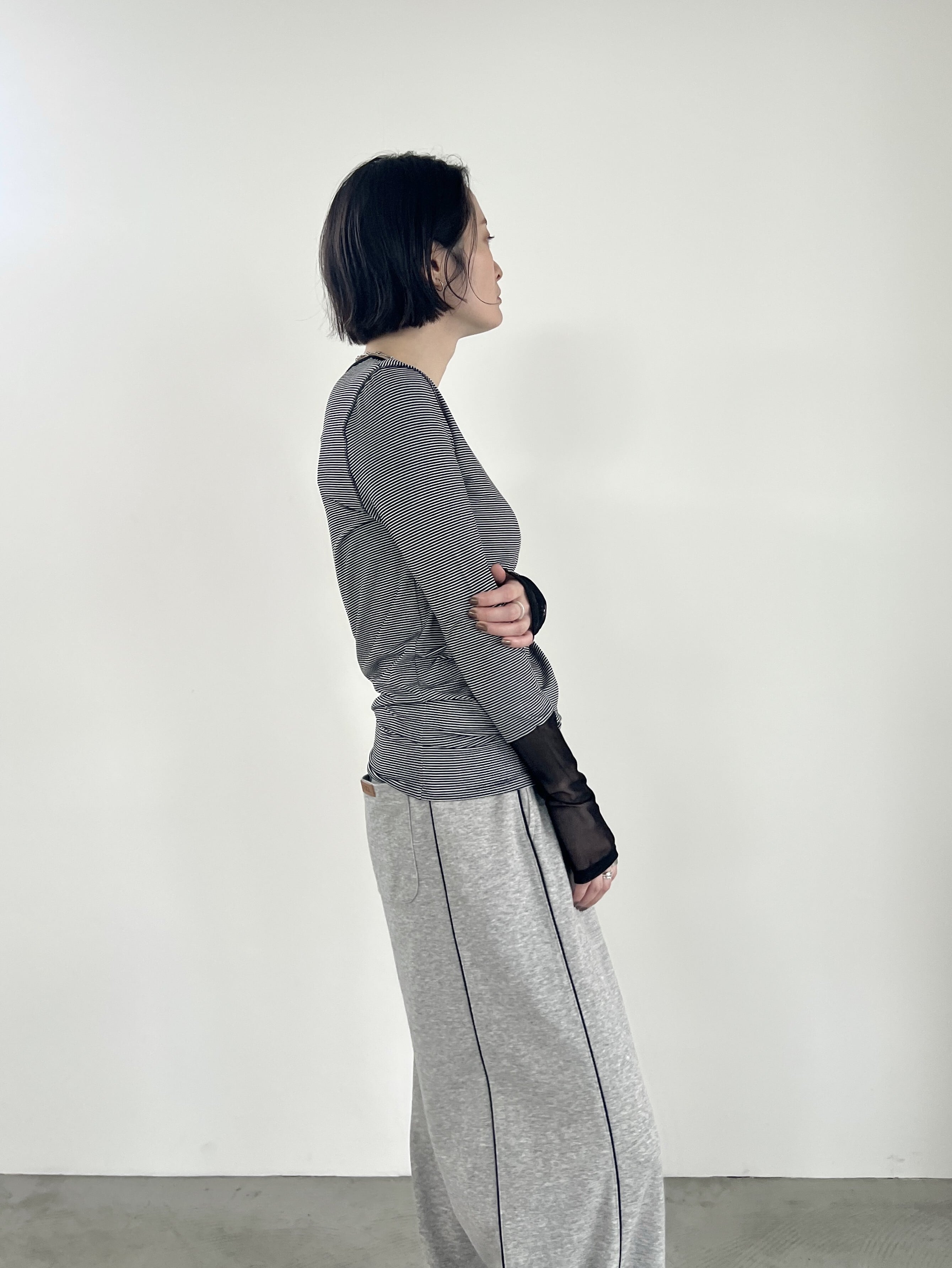 定番人気の袖口チュール切替のインナー。伸縮性の高いとろみのあるテンセル素材で、肌触りが良く身体にフィットする着心地抜群のインナーです。秋~春までロングシーズン着用していただける、レイヤードスタイルに欠かせないアイテムです。