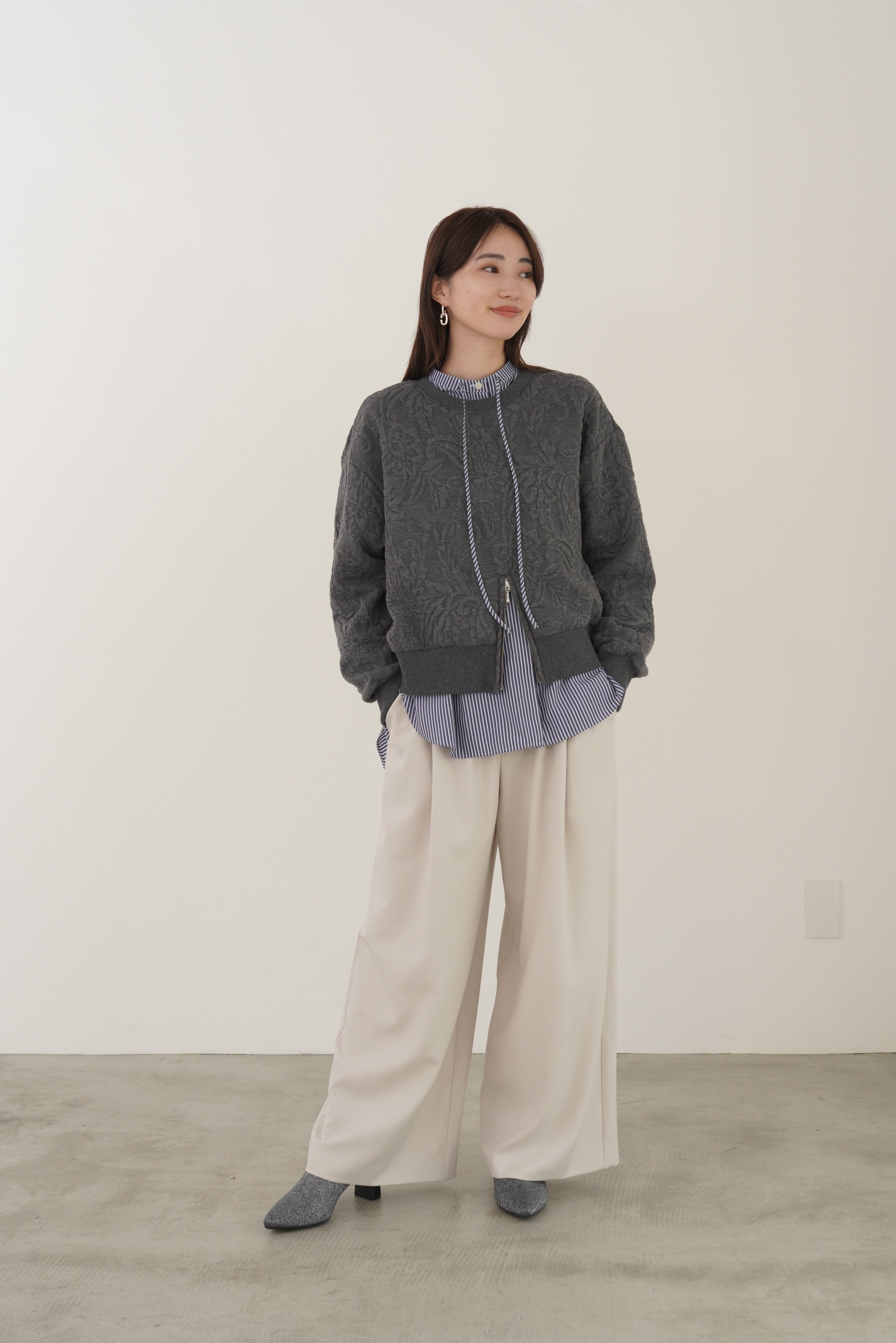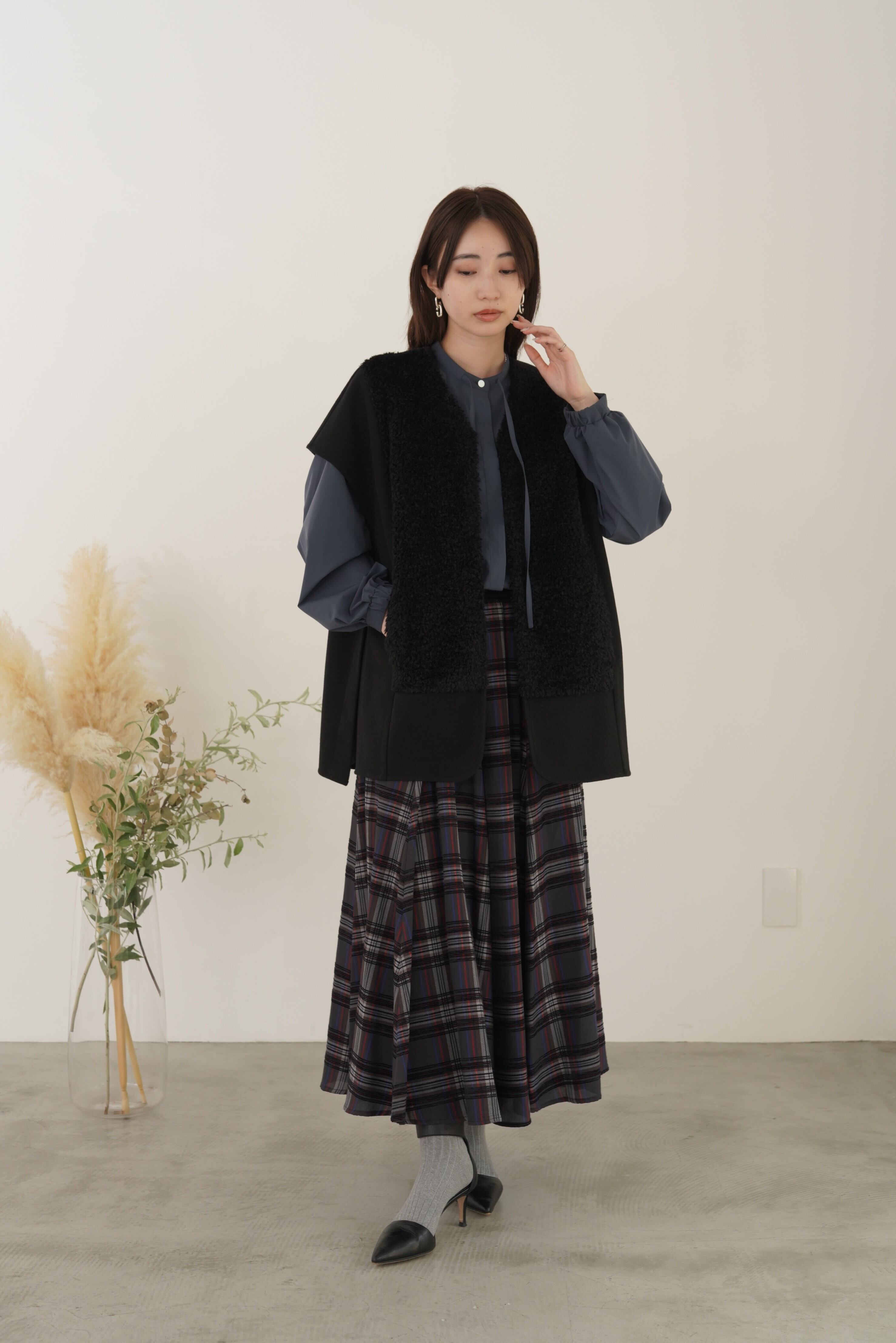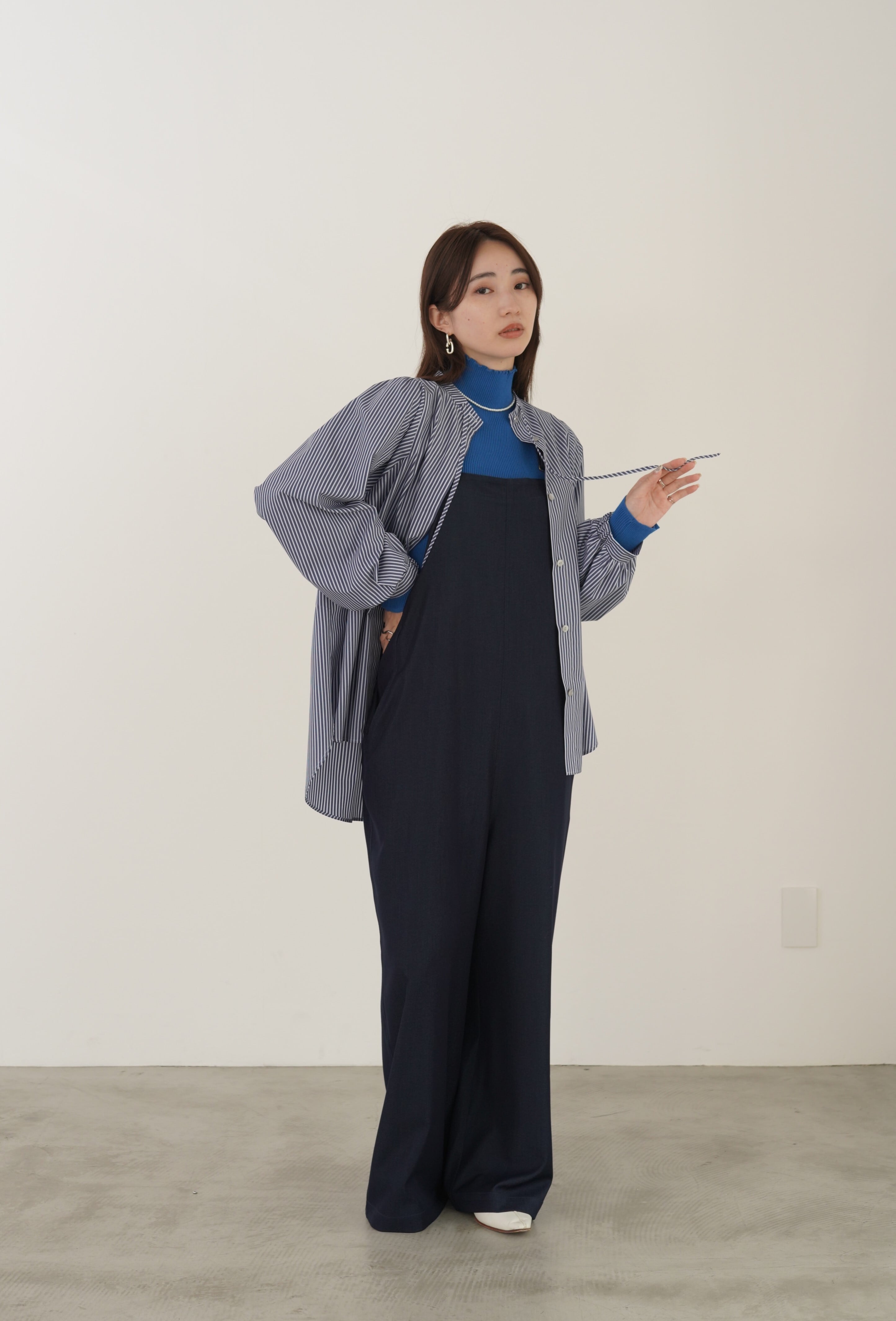 肩を華奢に見せてくれるギャザーショルダーブラウス。比翼仕立てでドレス要素をプラス。襟のリボンとシルバーのボタンがminkchairらしいアクセント。袖口下にゴムが入っており、たくし上げやすい袖口の仕上げに。コットンライクなポリエステル素材でシワになりにくく、さらっとしたタッチのシャツ地を使用しています。