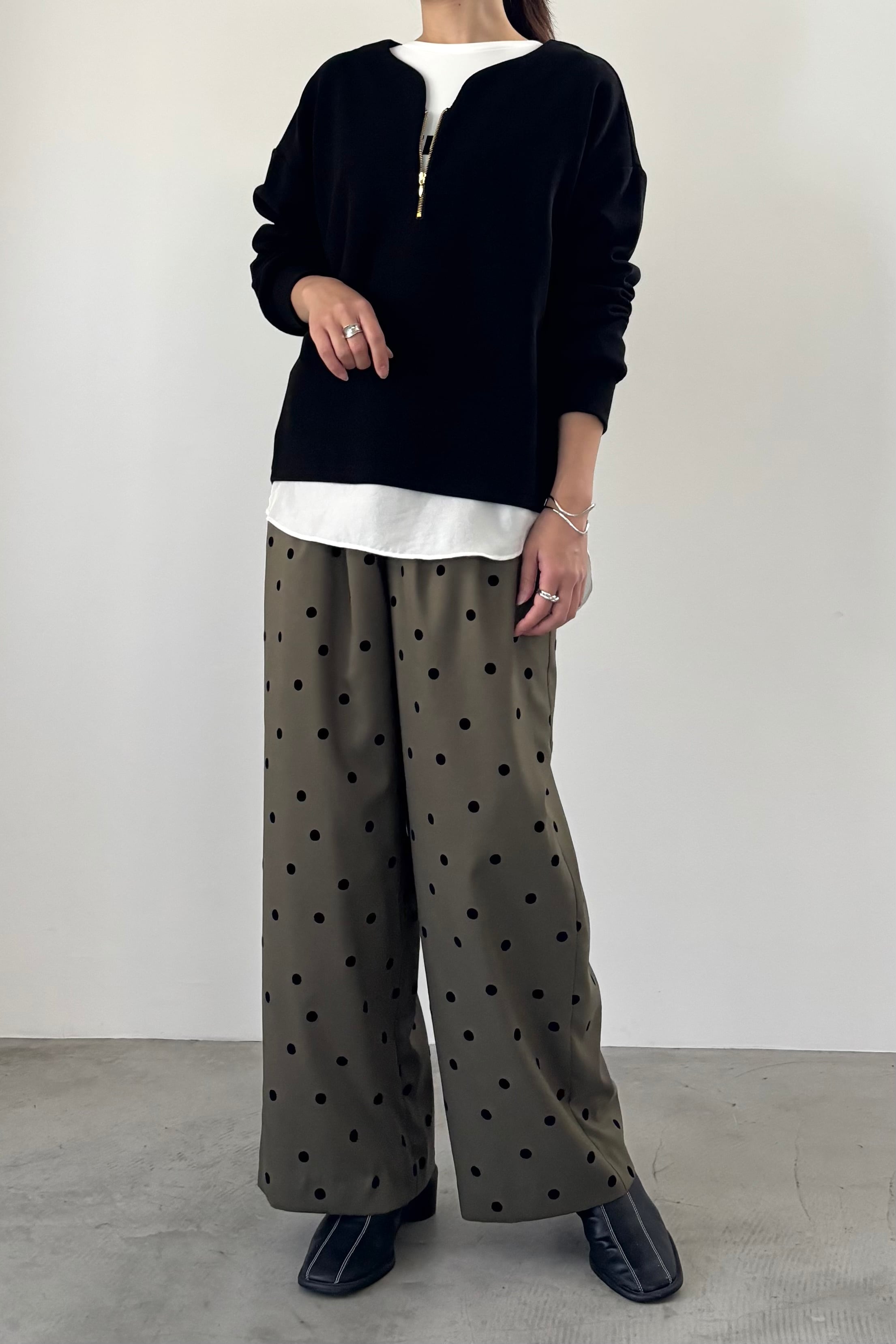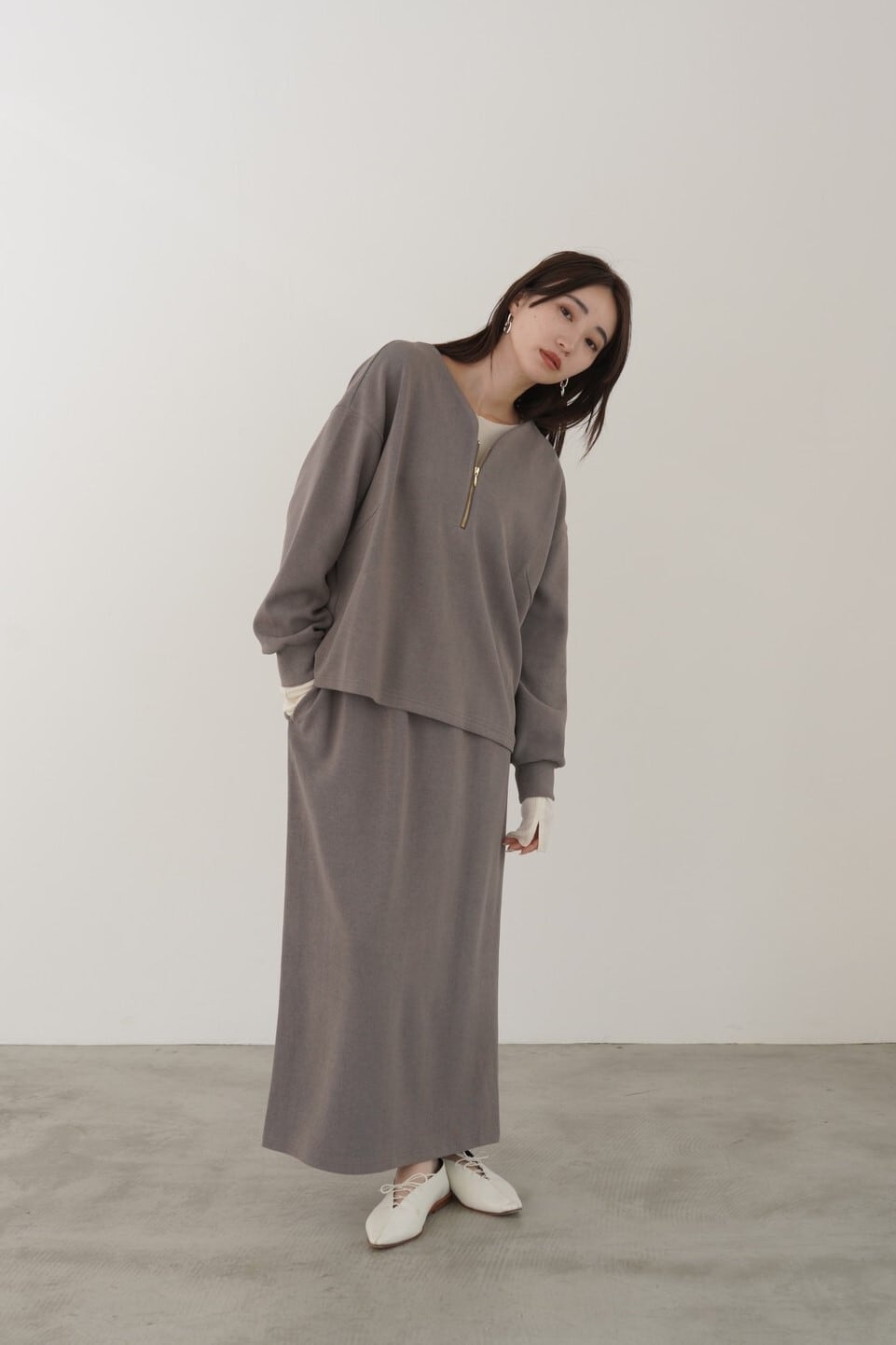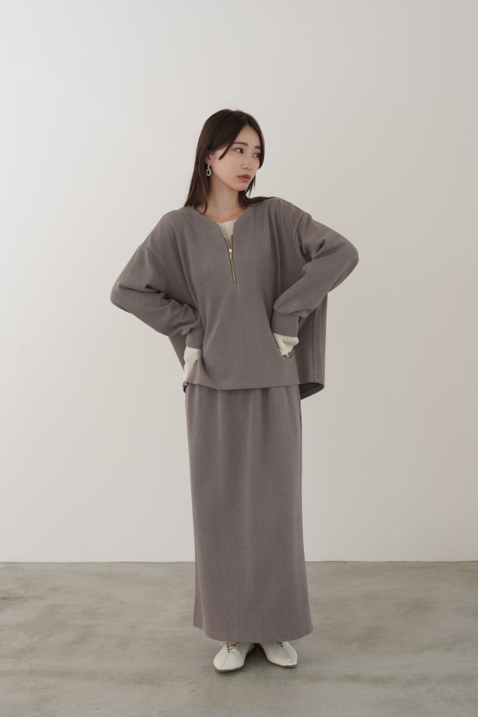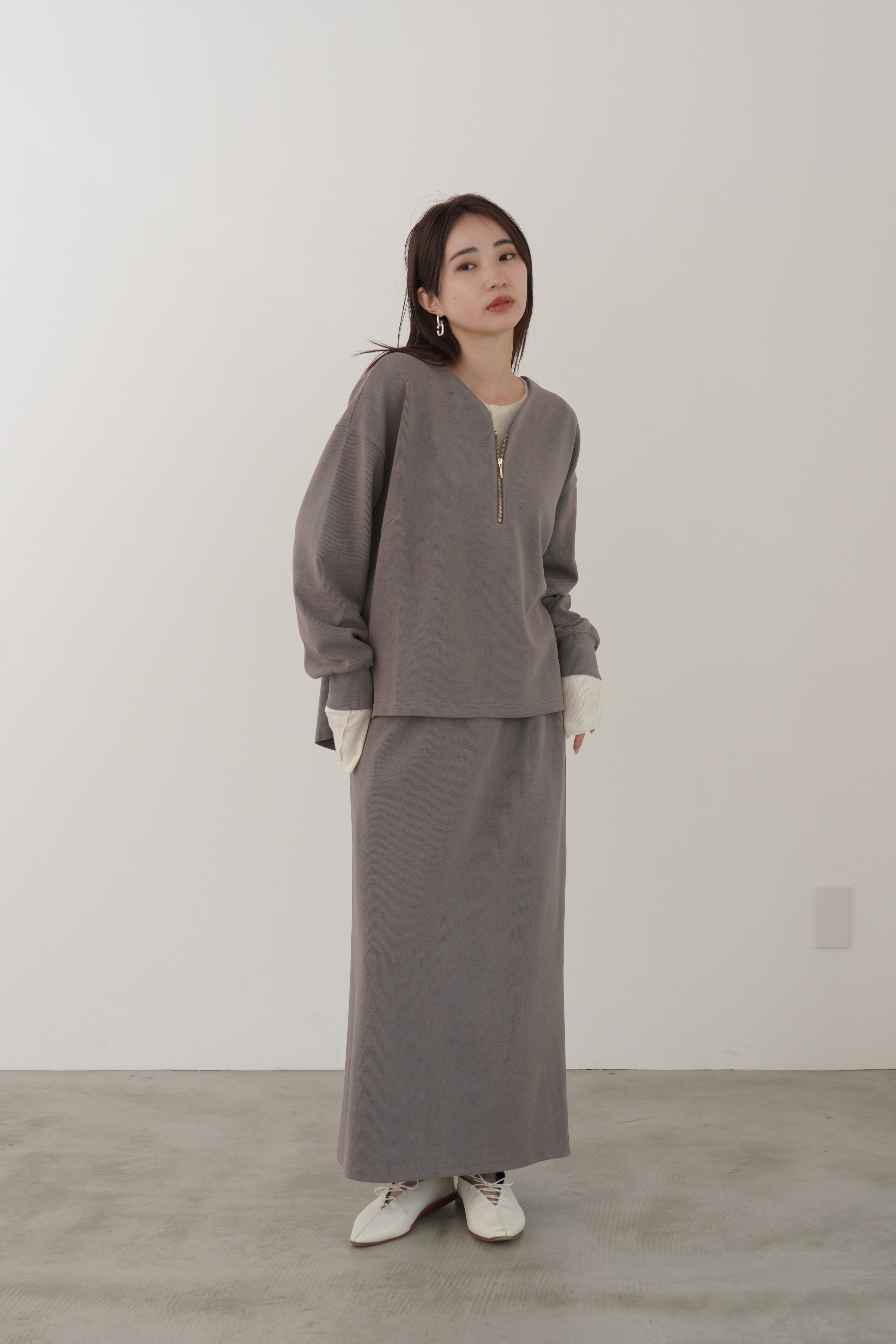 中肉で着心地の良い、柔らかなフライスニットを使用した3シーズン着回せるハーフジップトップス。ドロップショルダーで身幅にゆとりがあるので、様々なアイテムとのレイヤードが楽しめます。顔まわりをすっきり見せてくれるゆるいカーブの襟ぐりに仕上げました。