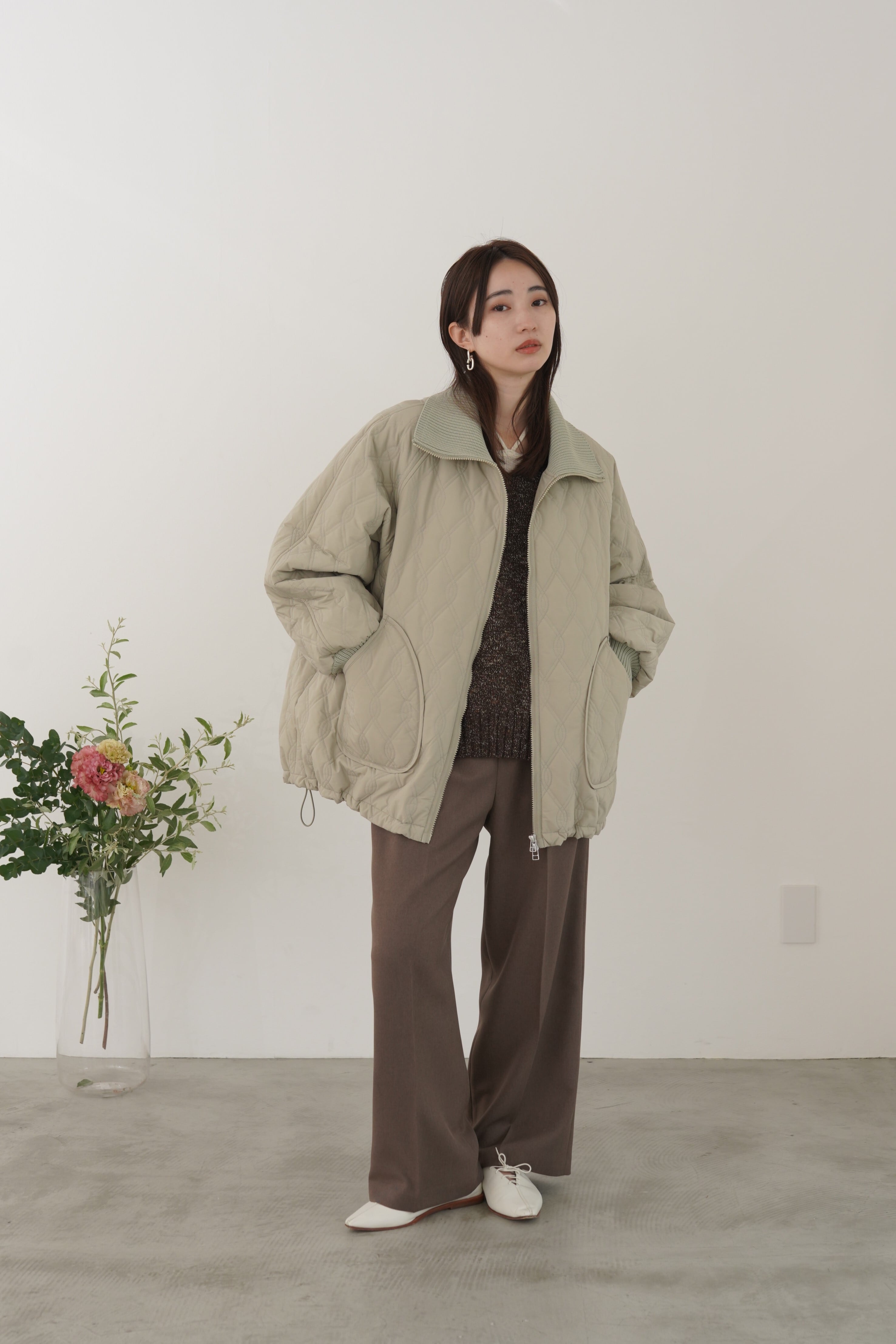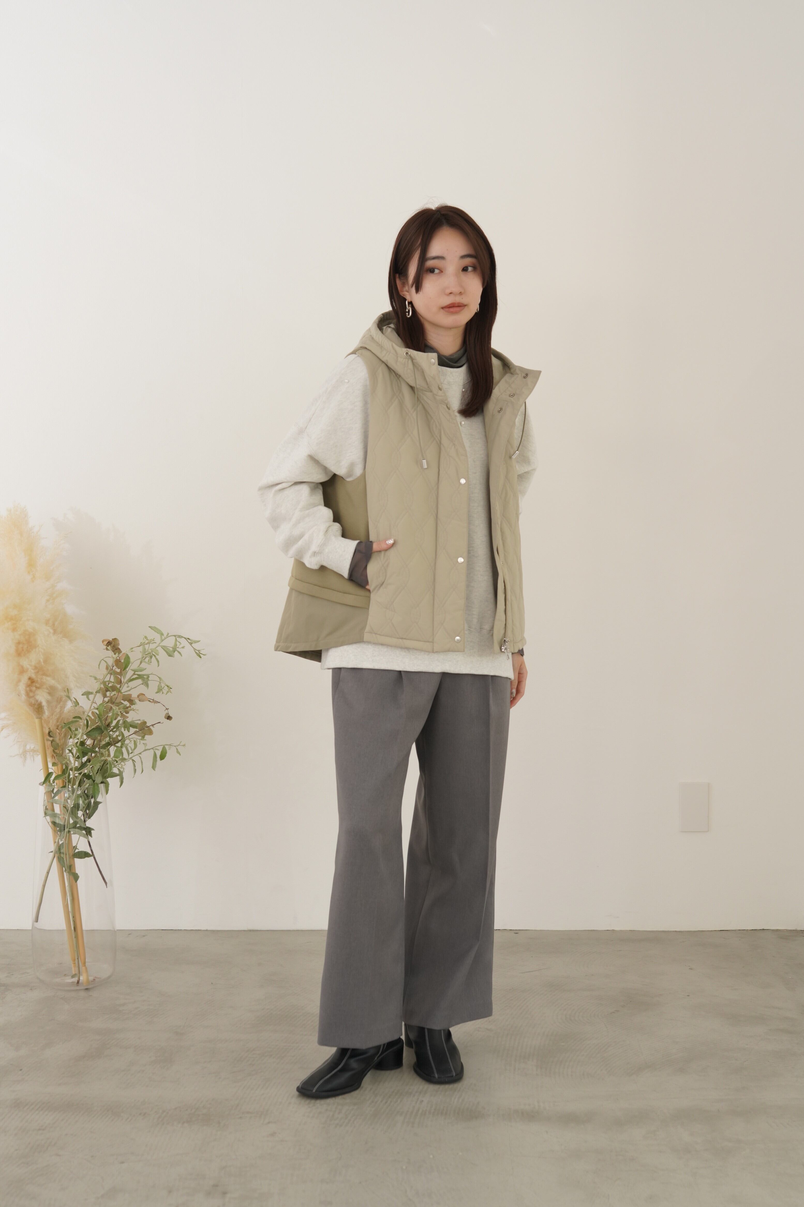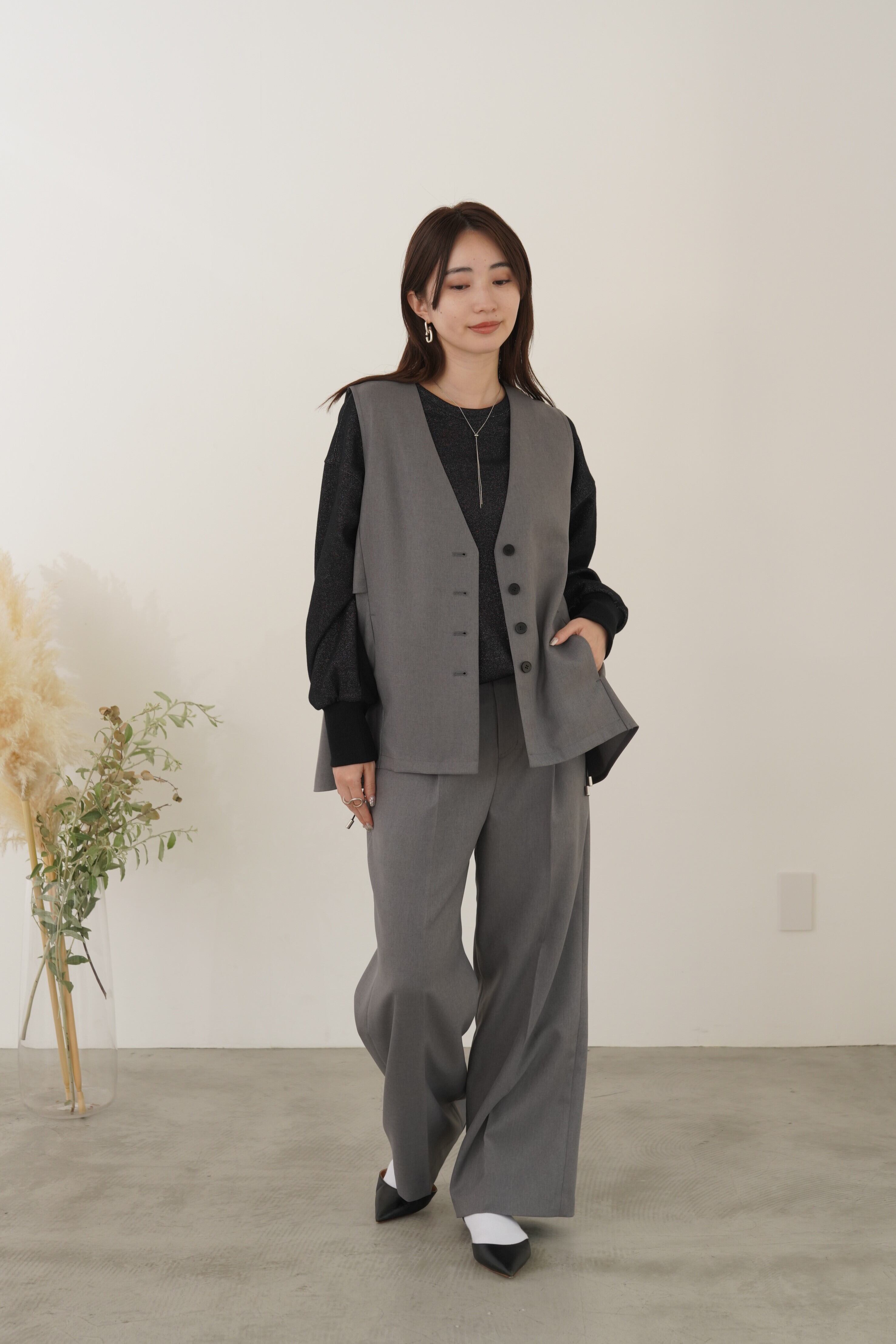 パウダリータッチのポリエステルツイルを使用したストレートパンツ。前はすっきりシルエットですが、後ろウエストがゴム仕様なので履き心地抜群。センタープレス入りでマニッシュ感がありながらも、後ろウエスト端のミニフリルや、柔らかな生地感で女性らしさもあるパンツです。同素材のフレアジレと合わせるスタイルもおすすめ。