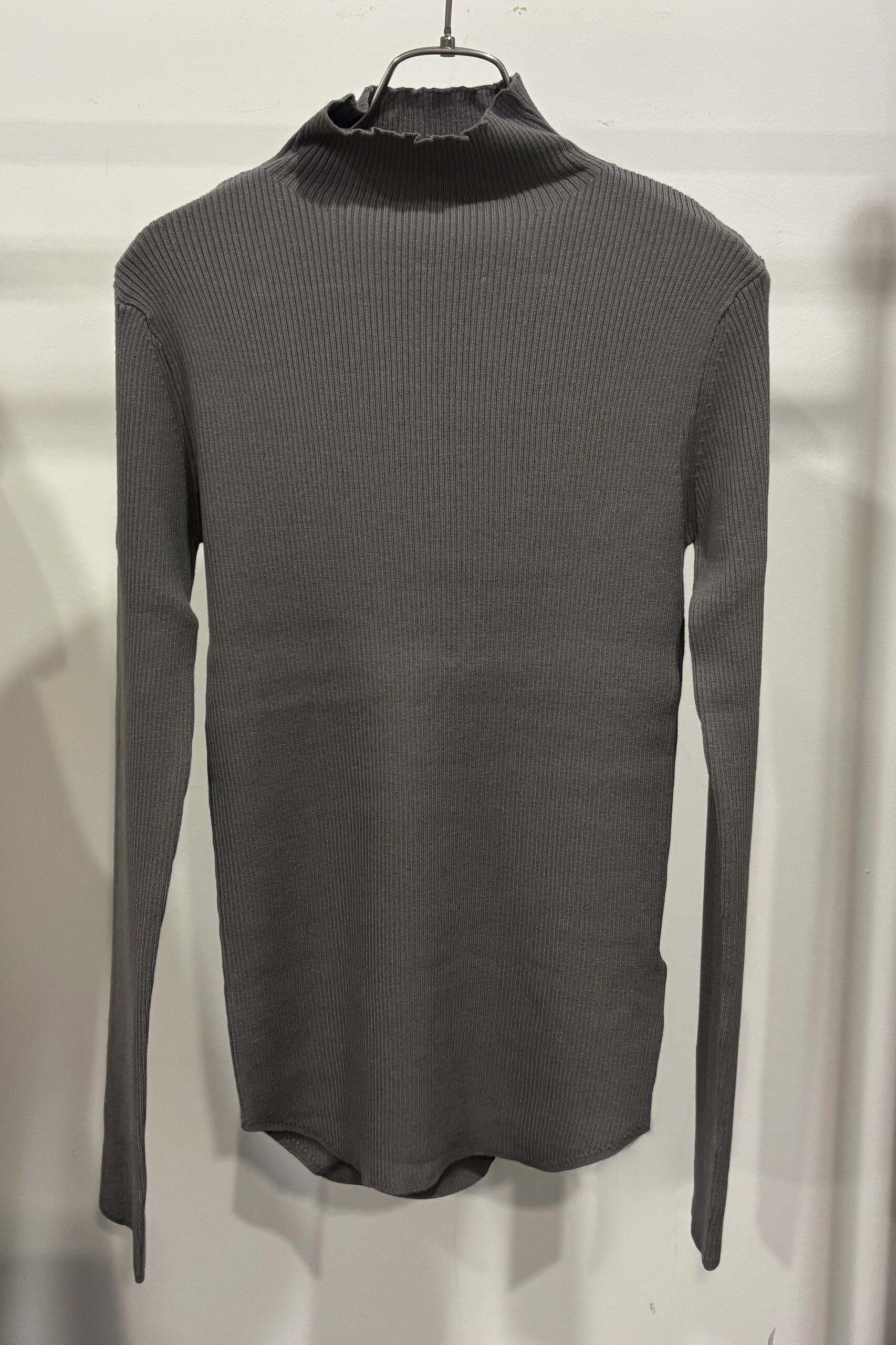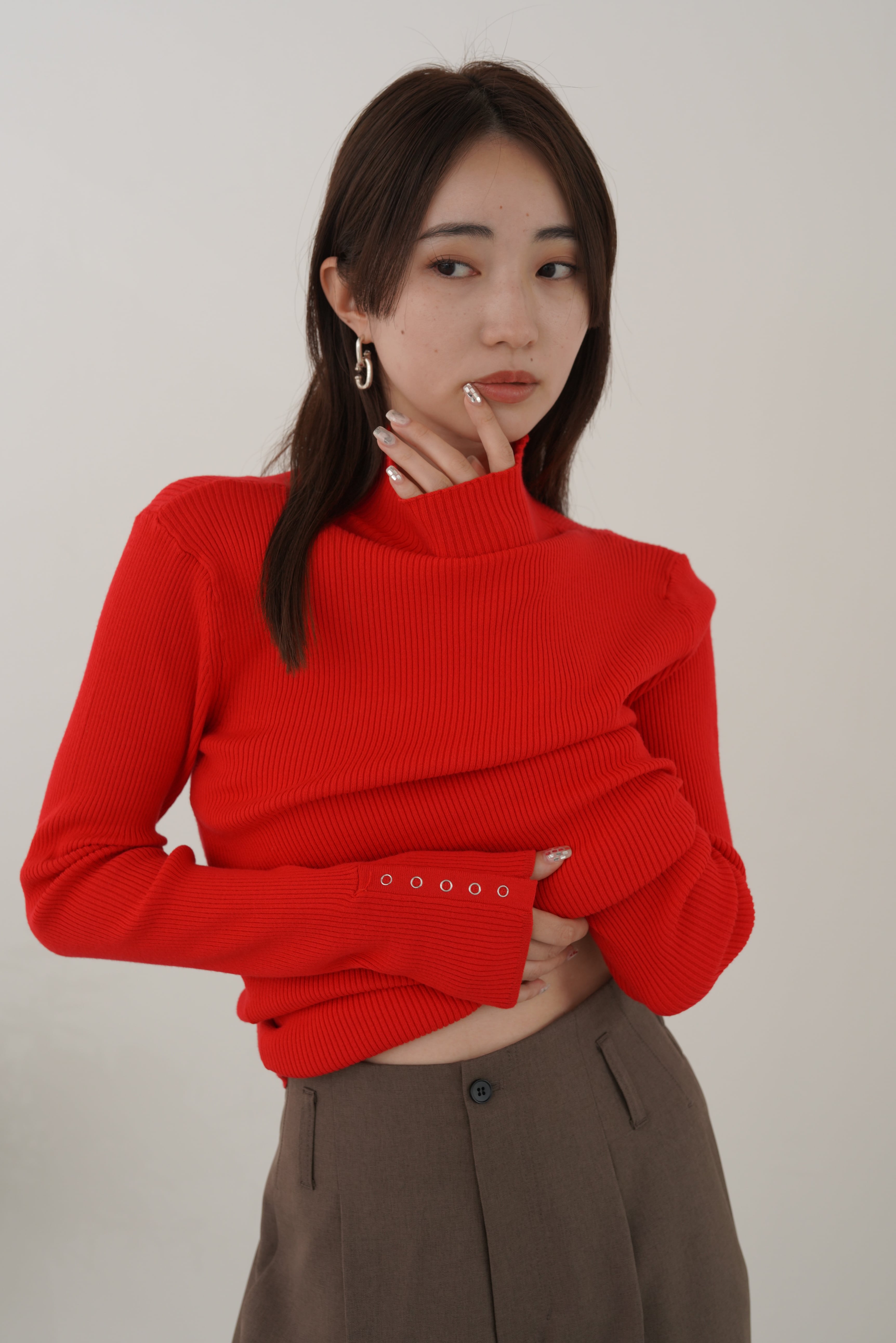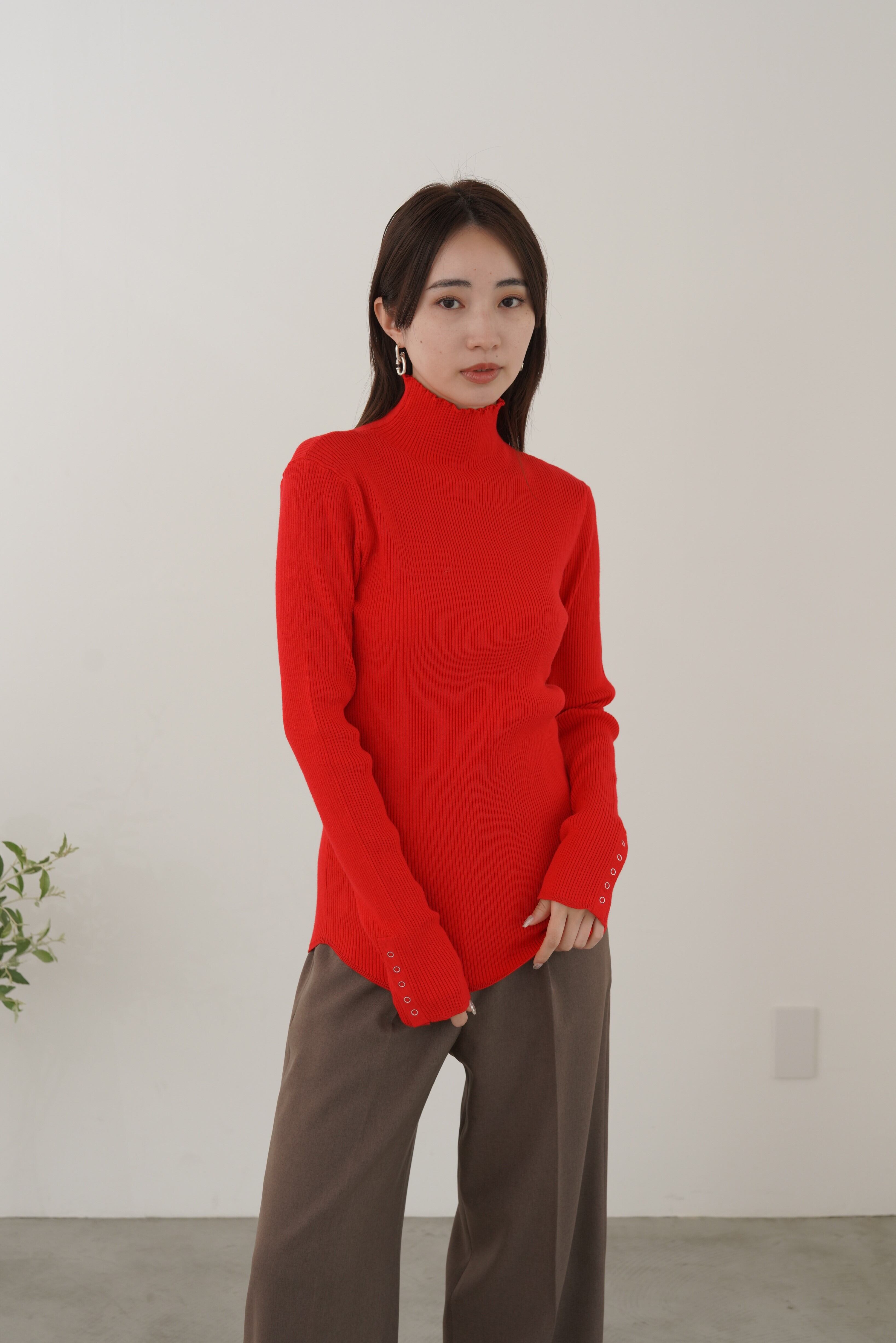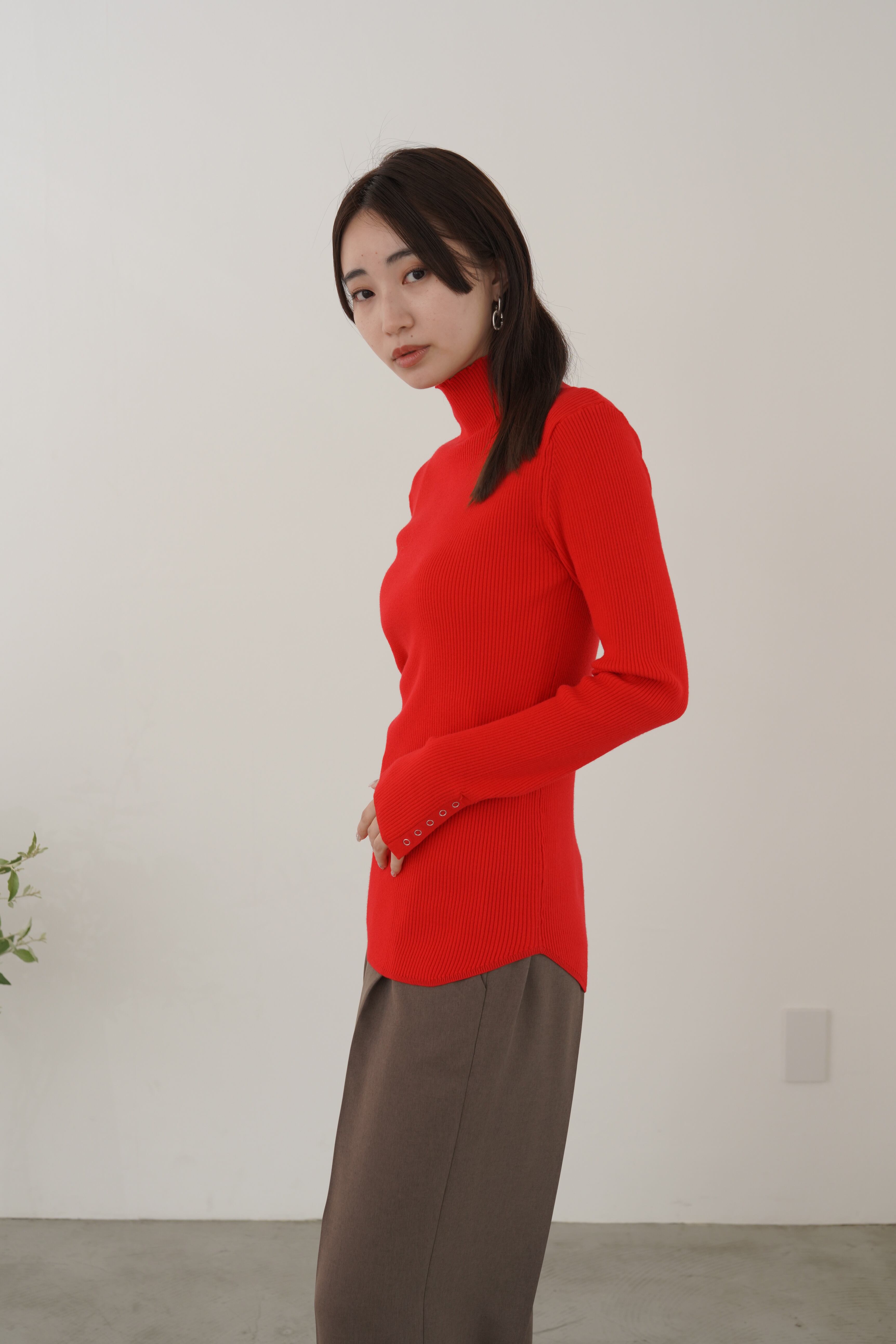 minkchair冬の定番、ドットボタンスリーブのハイネックニット。編み続きのハイネックデザインが首元をきれいに見せてくれます。ピリングしにくい、しっとりもちもちとした非ウール素材でチクチクせず、イージーケアも兼ね備えた優秀ニットです。