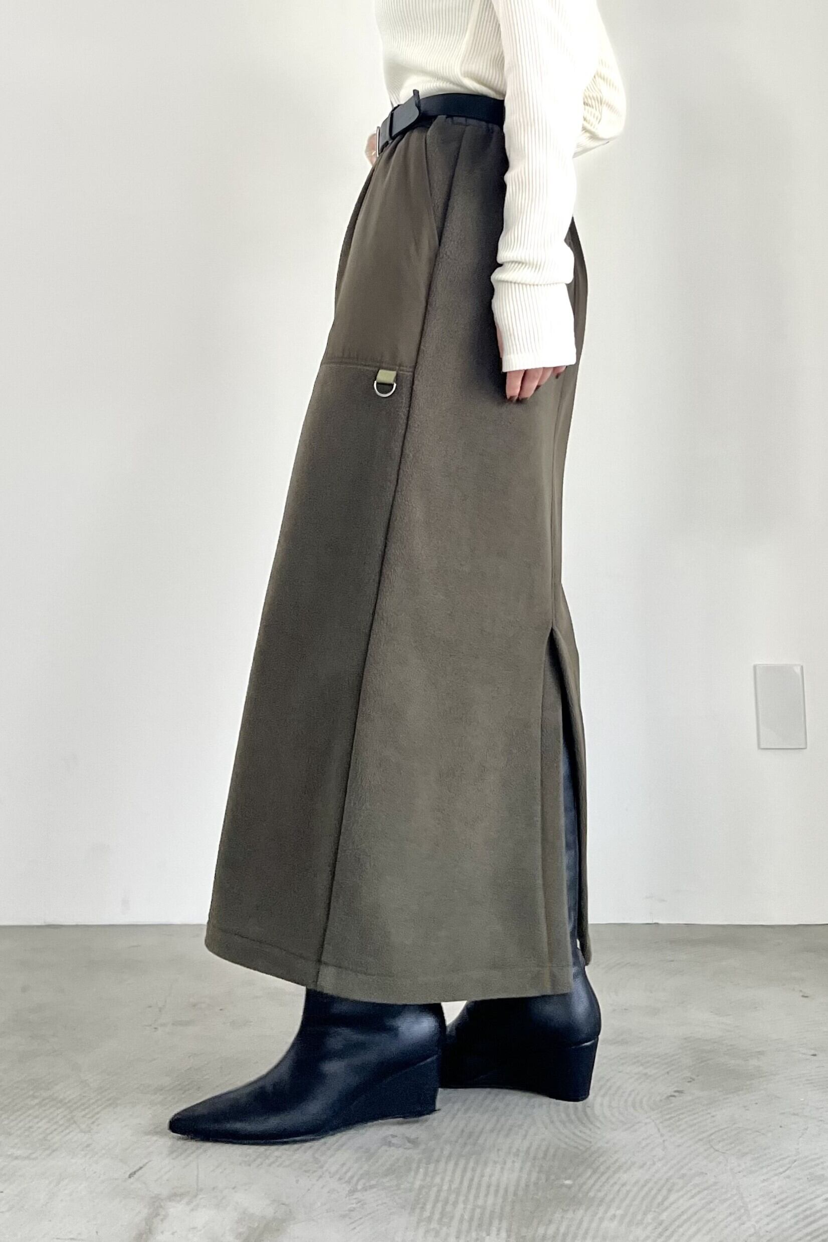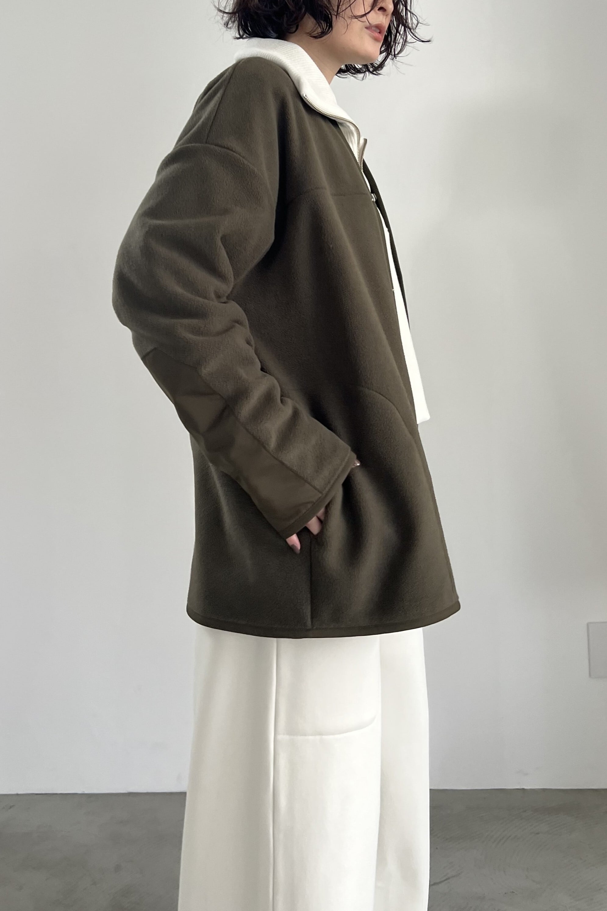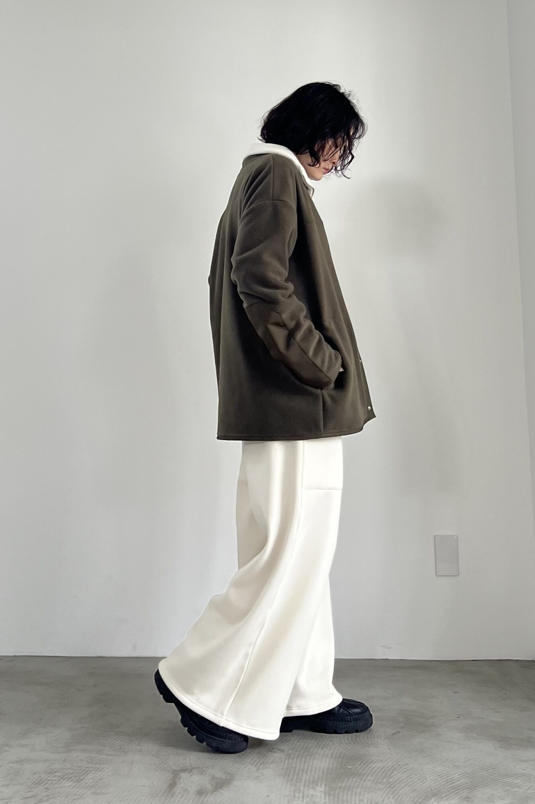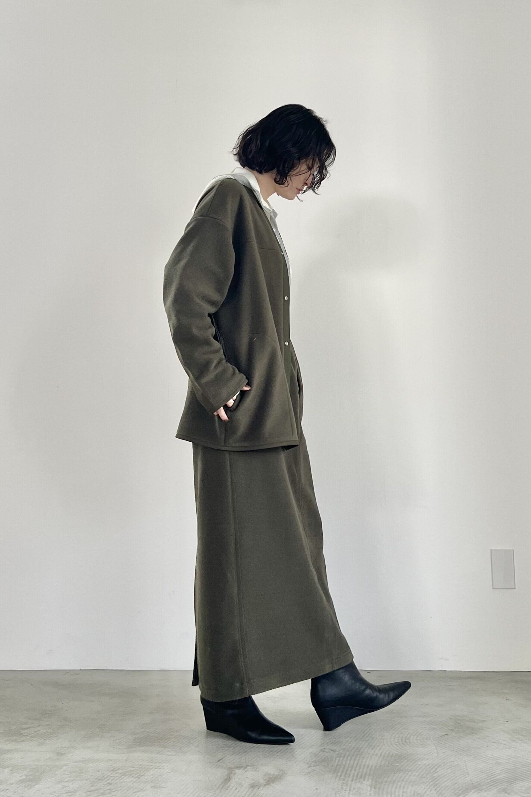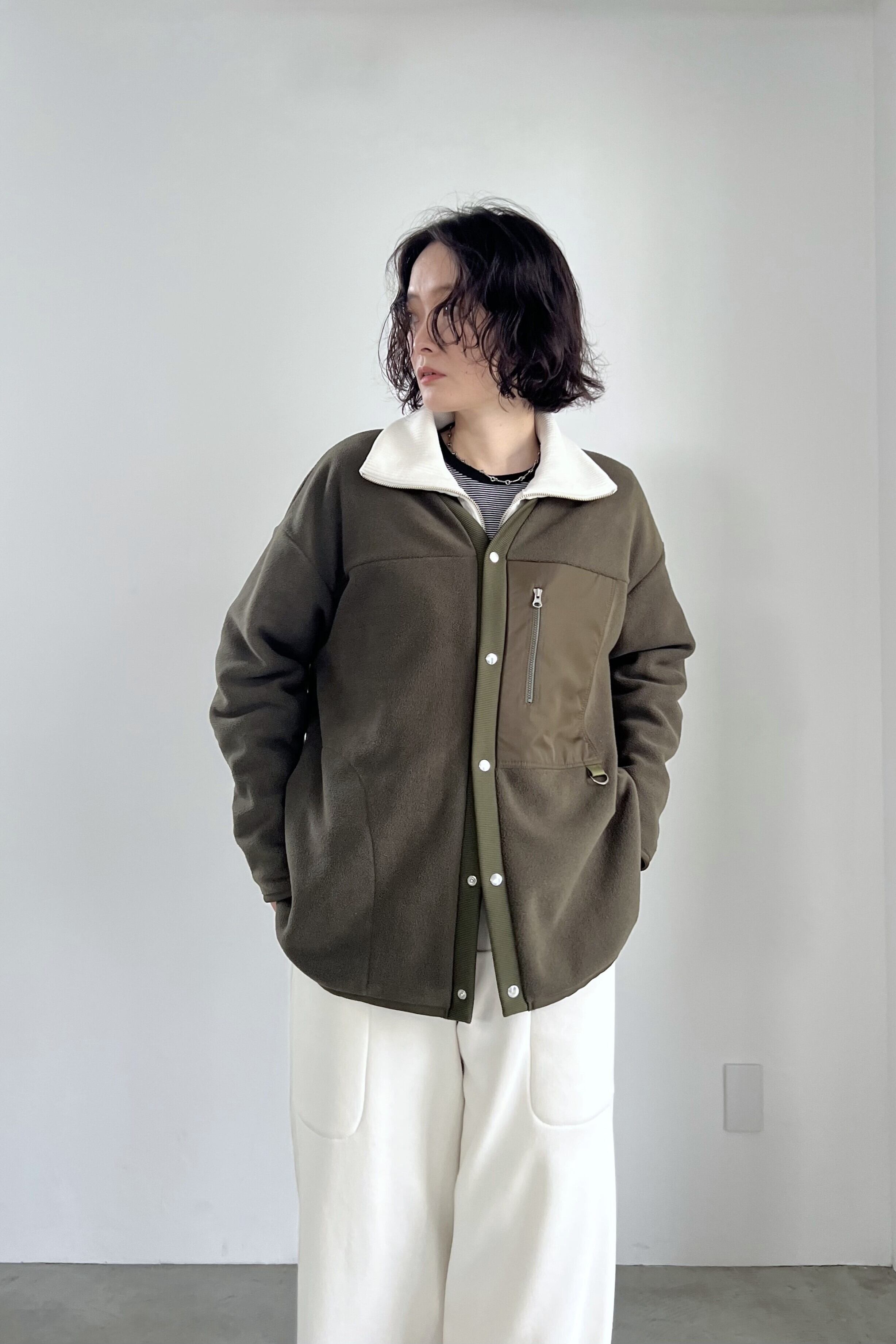PETボトルから再生された"エコフリース"を使用したアウトドアな雰囲気のFOSI.らしいカーディガン。ファスナー使いのブルゾンタイプが多い印象のフリースアウターを、あえてカーディガンに落とし込みました。軽量で温かく、インナーも着込めるサイズ感です。同素材のスカートとのセットアップもおすすめです。