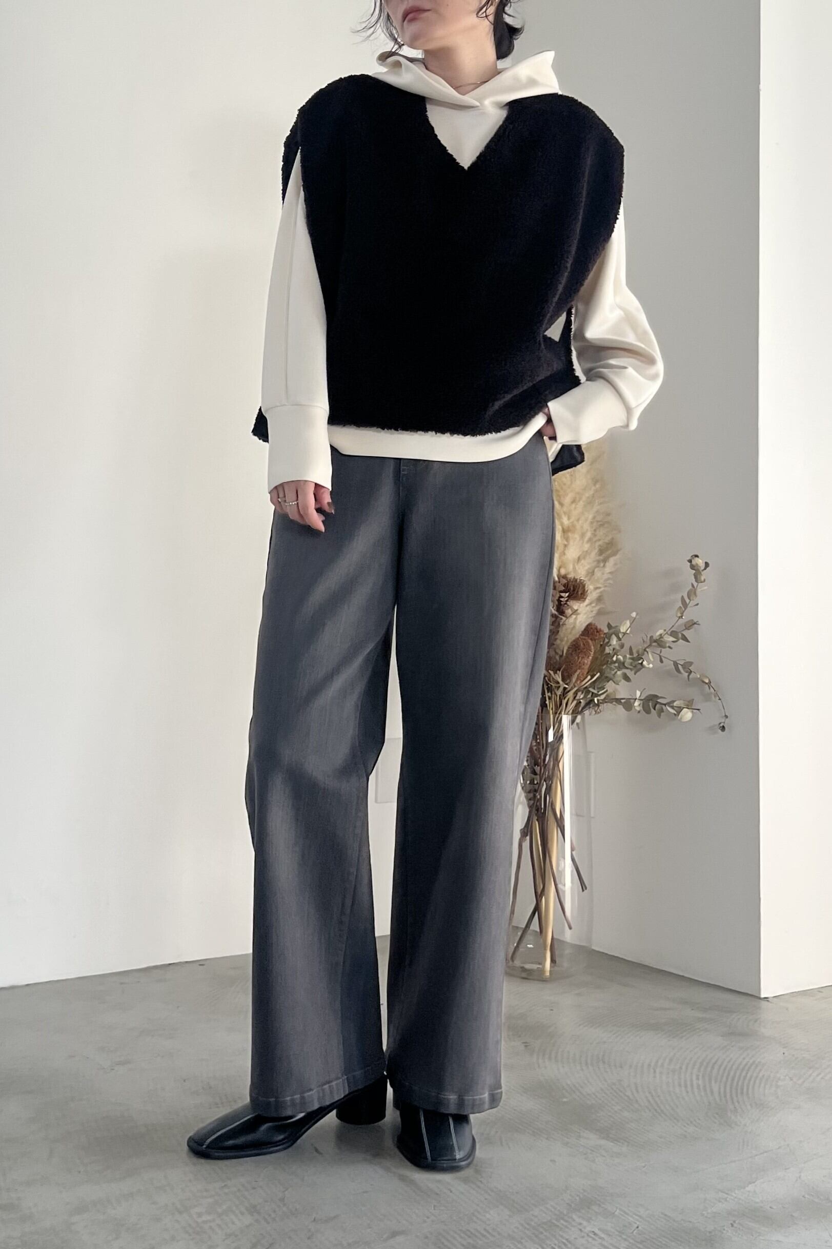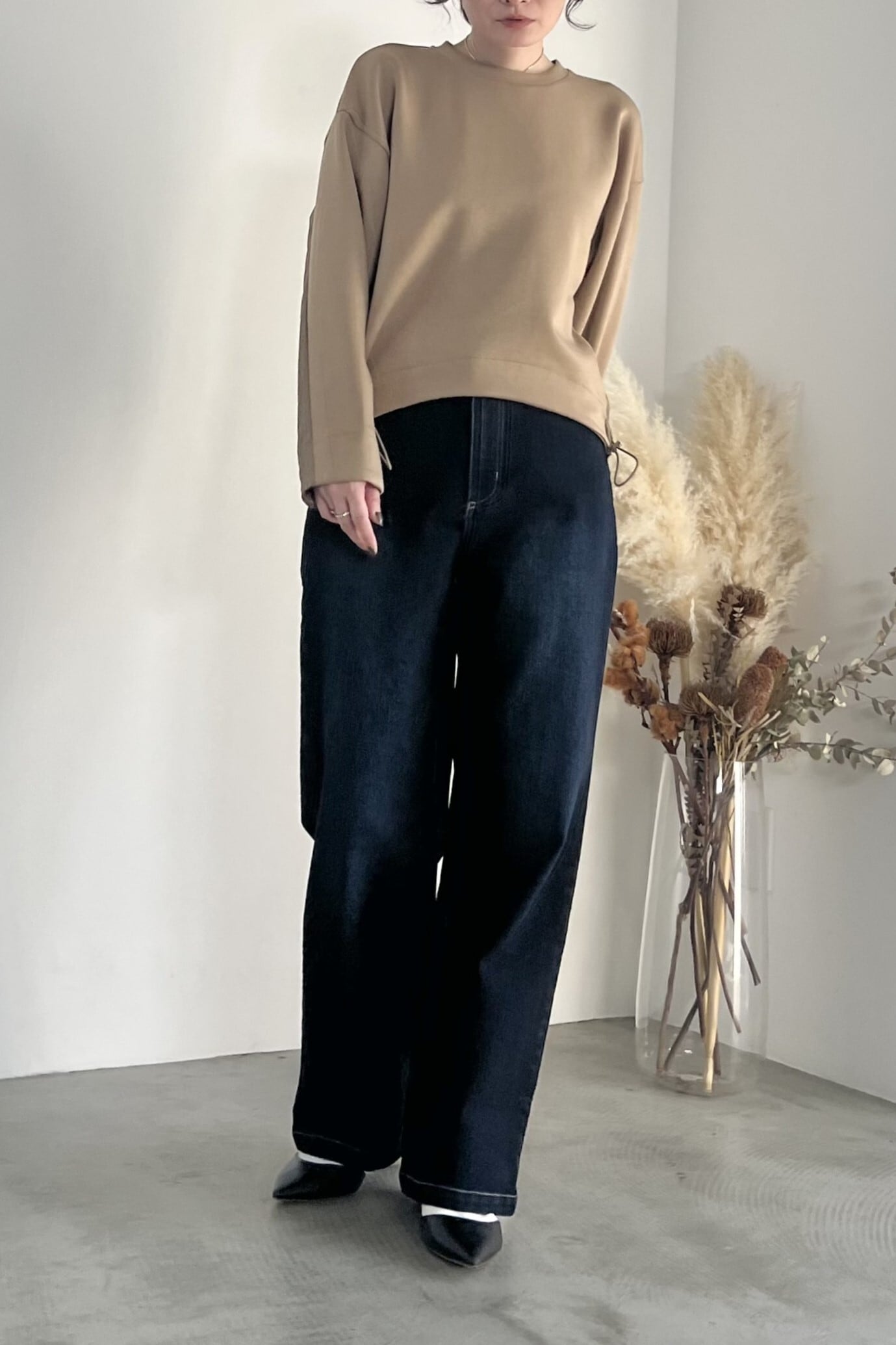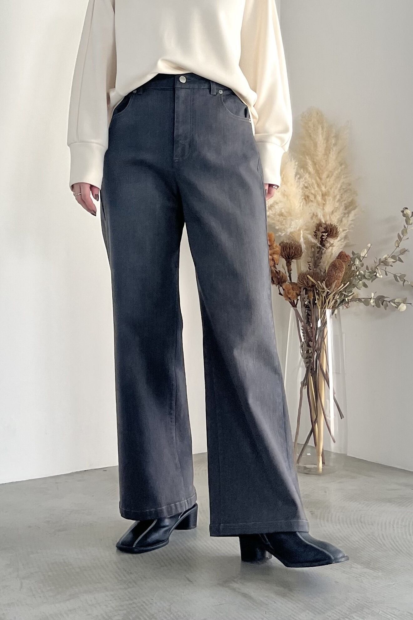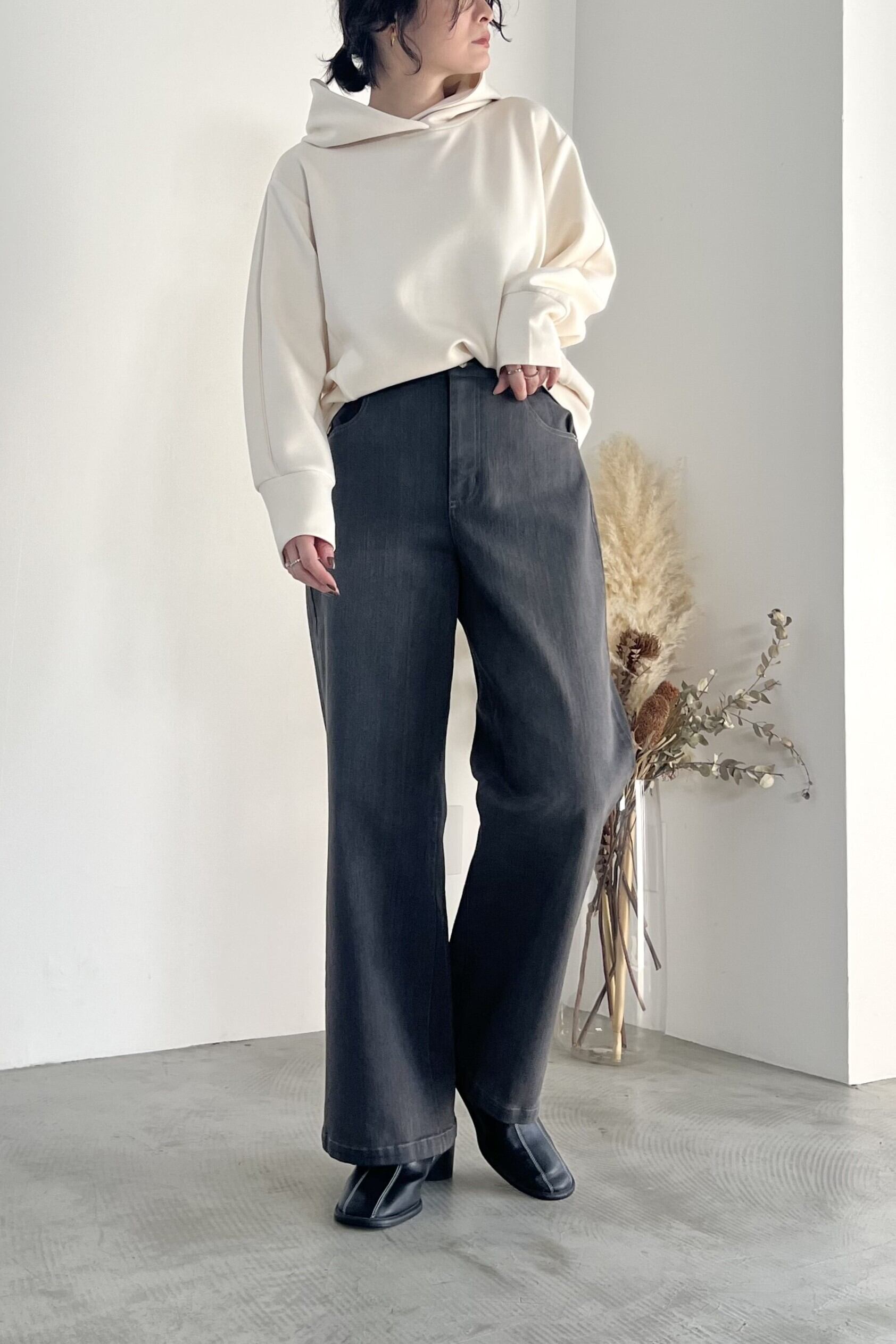 シンプルなストレートシルエットのデニムパンツ。ポリウレタン混の生地を使用しているためストレッチ性に優れており、長時間の着用でも快適に着用いただけます。トップスを選ばないためデイリーに活躍する万能アイテムです。