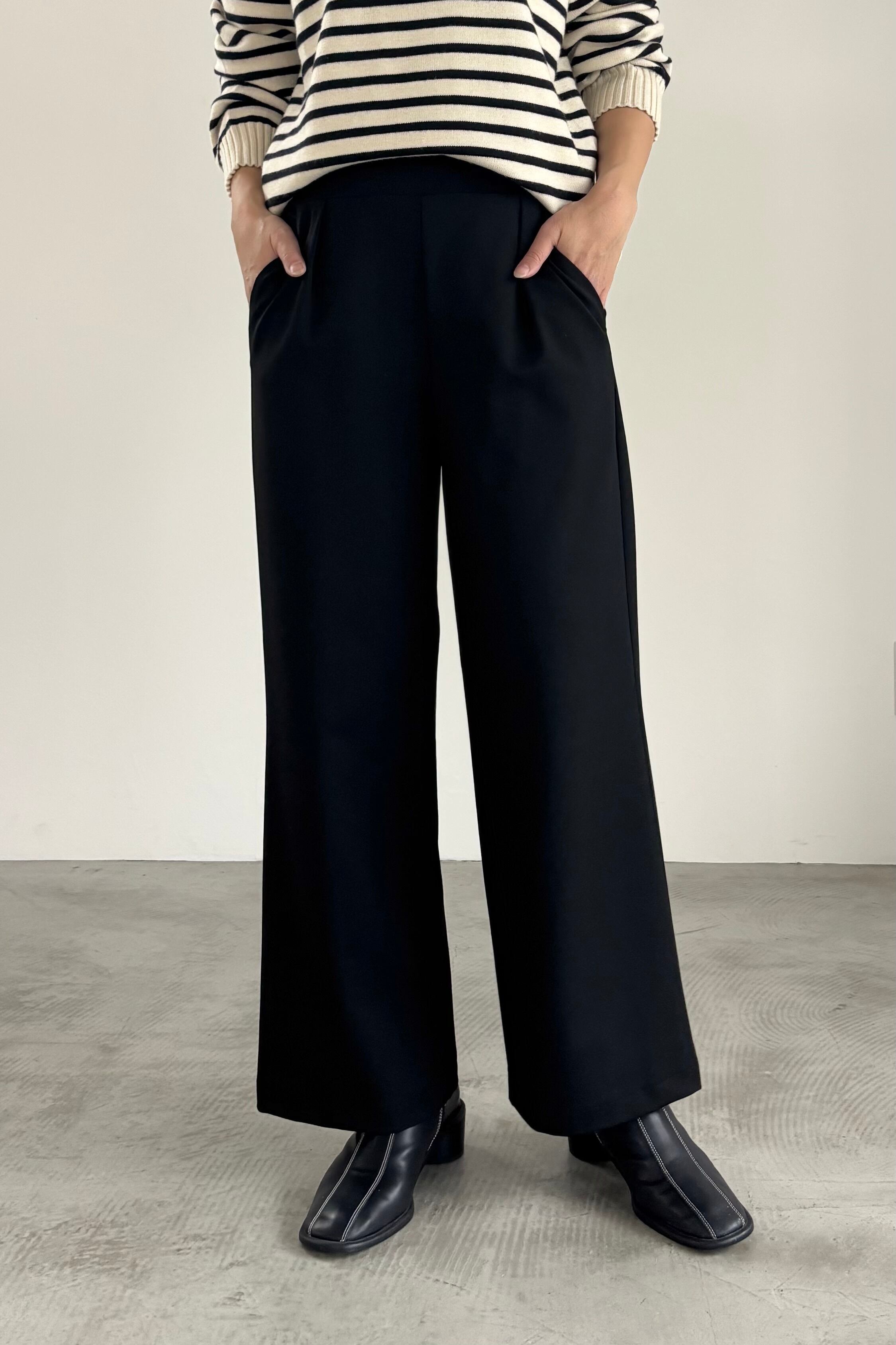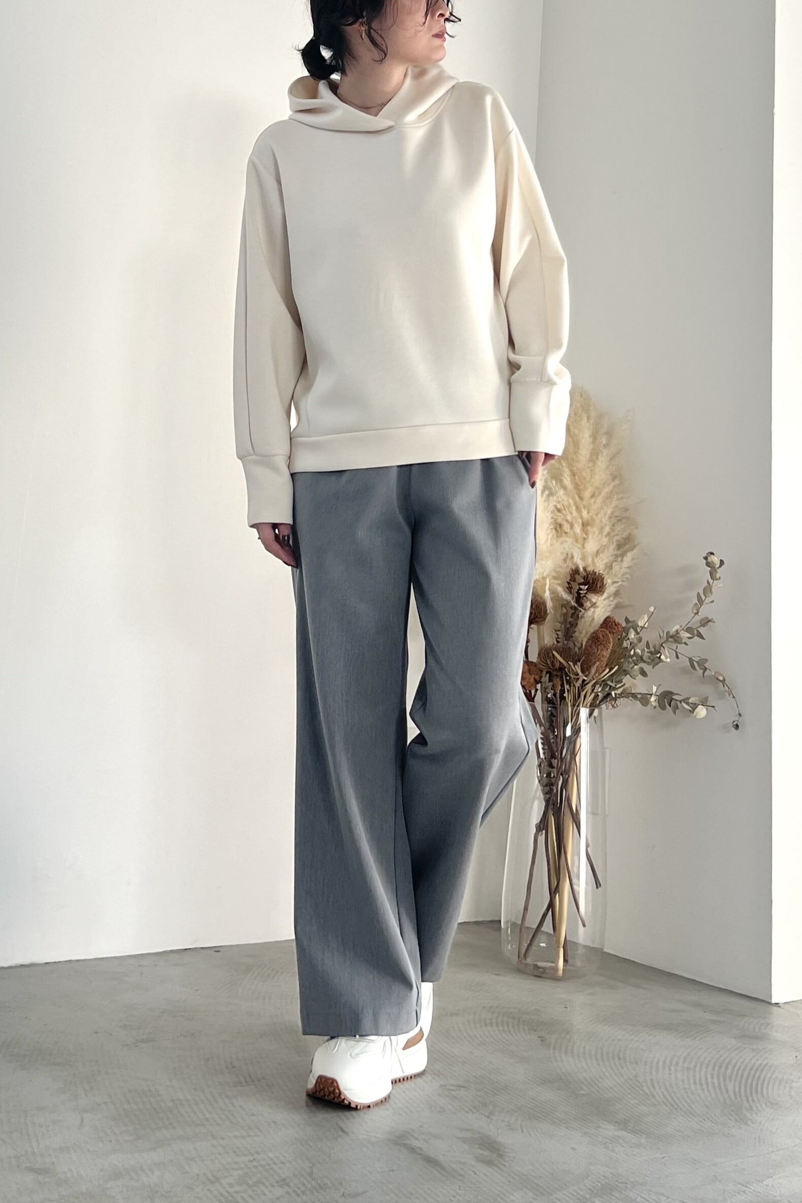 セミフレアシルエットのストレッチパンツ。夏は涼しく、冬は暖かく過ごせる調温機能糸を使用しているため、オールシーズンで着用していただけます。オン・オフどちらでも活躍する万能アイテムです。