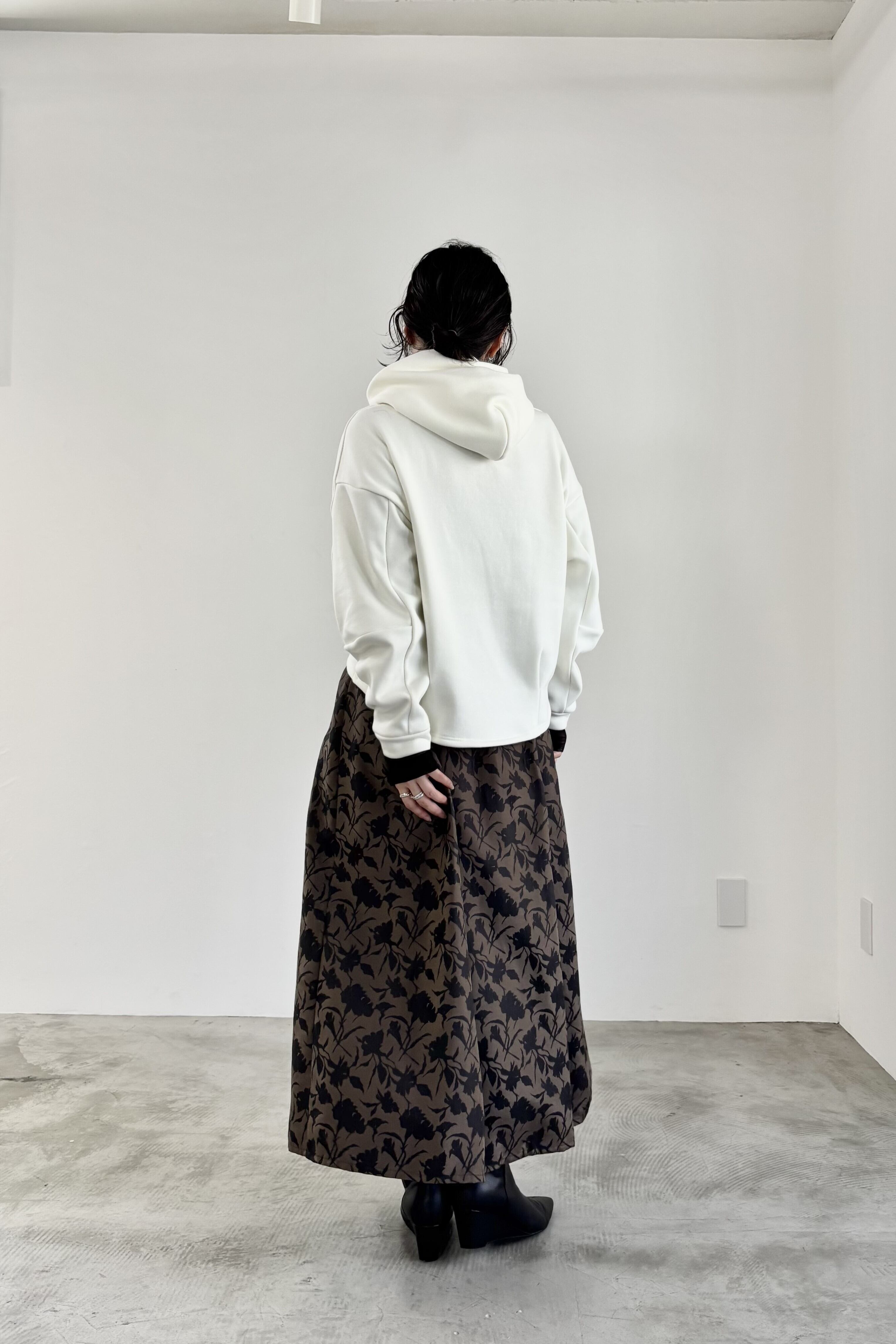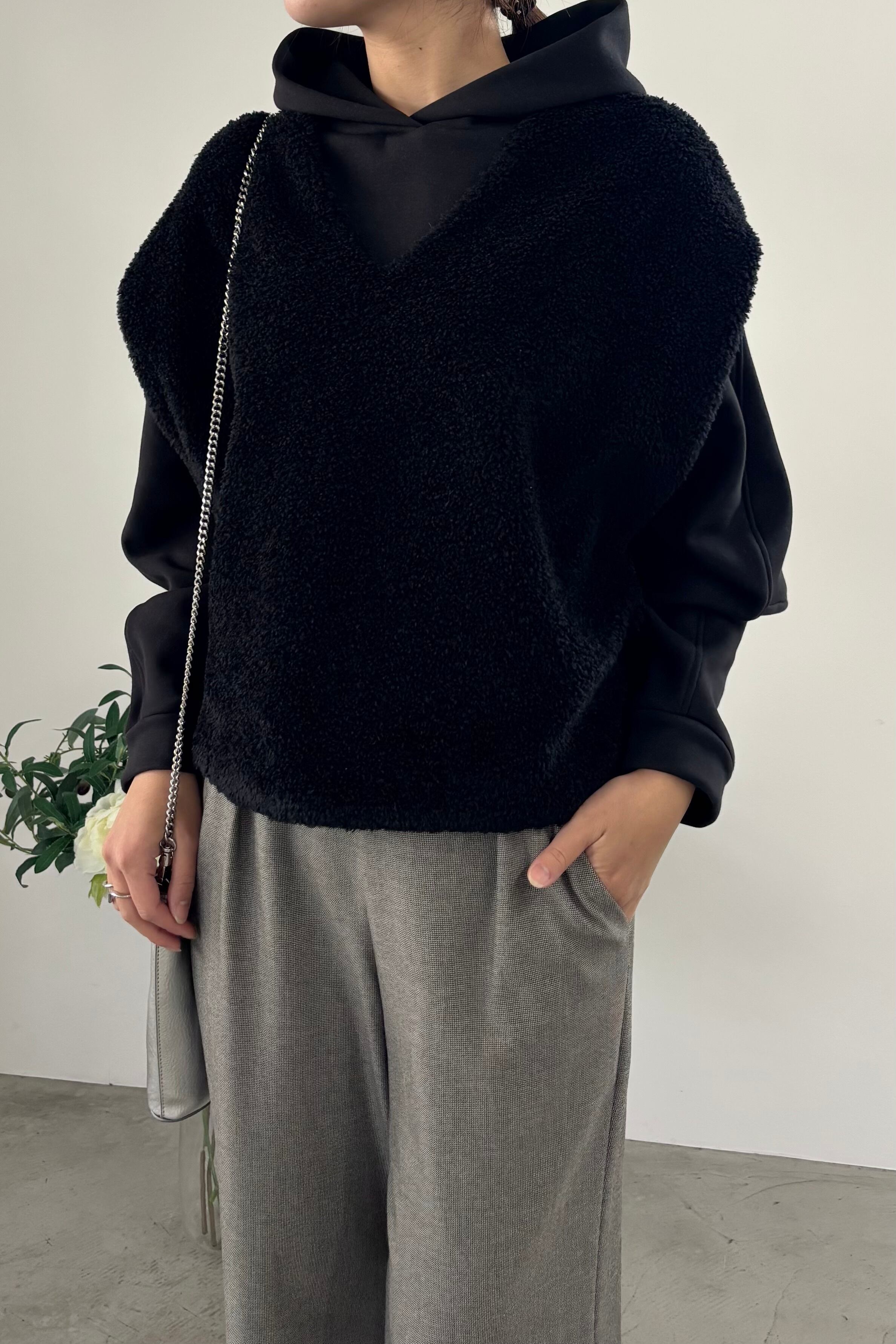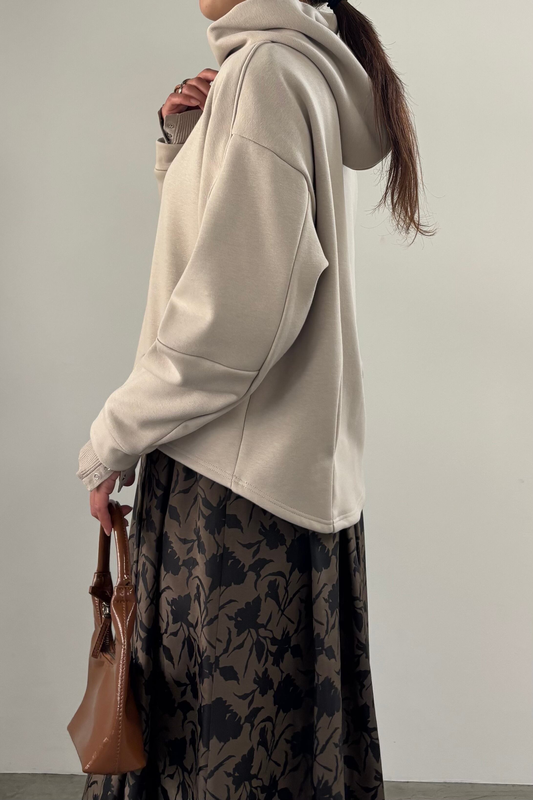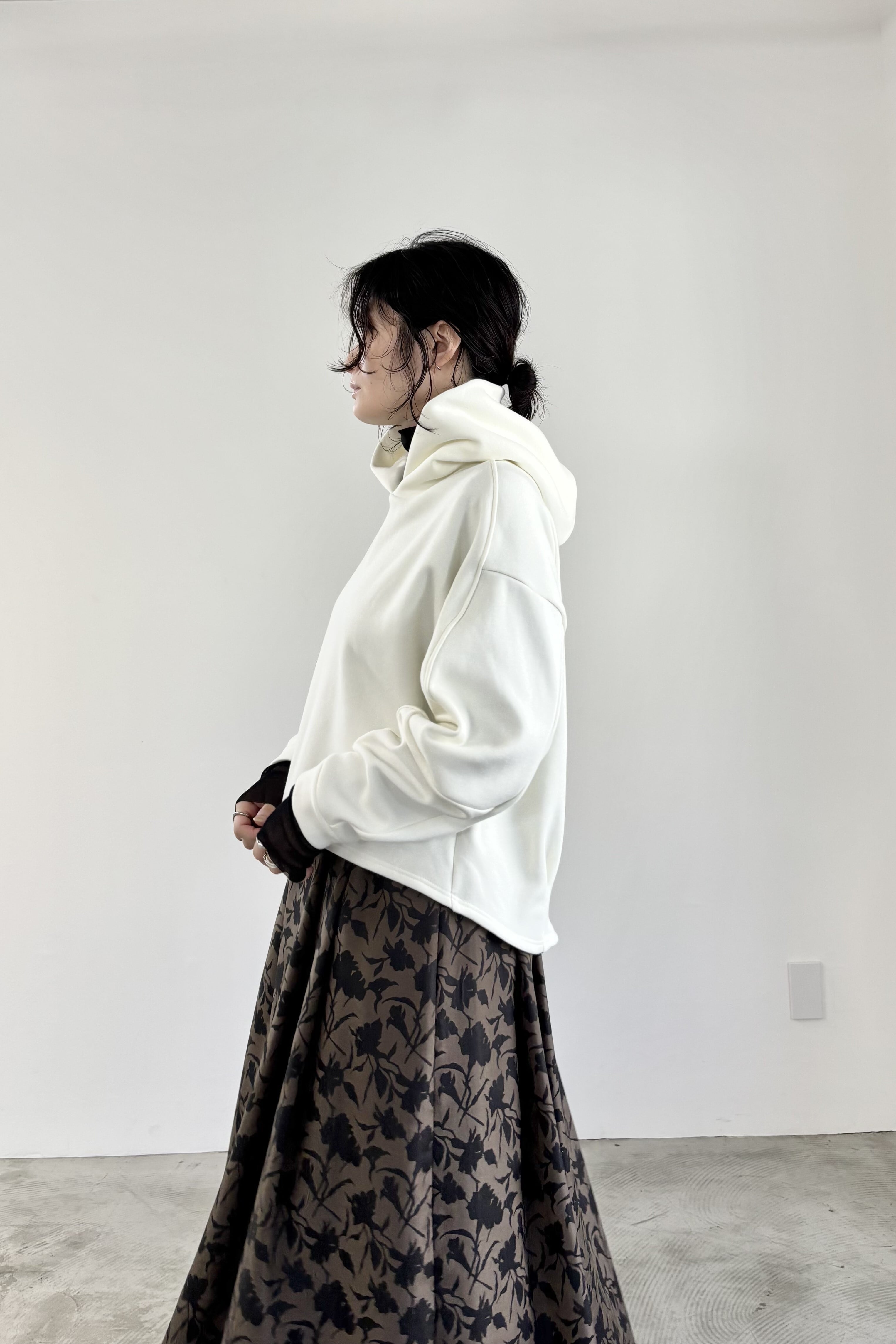 毛布に包まれるような、柔らかな裏起毛ムートン素材のパーカー。ストレッチの効いた着心地で、裏面には部分的に制電糸が使用されているため帯電防止性に優れています。アームと身頃は丸みのあるシルエットで、ボトムを選ばない着丈に仕上げました。