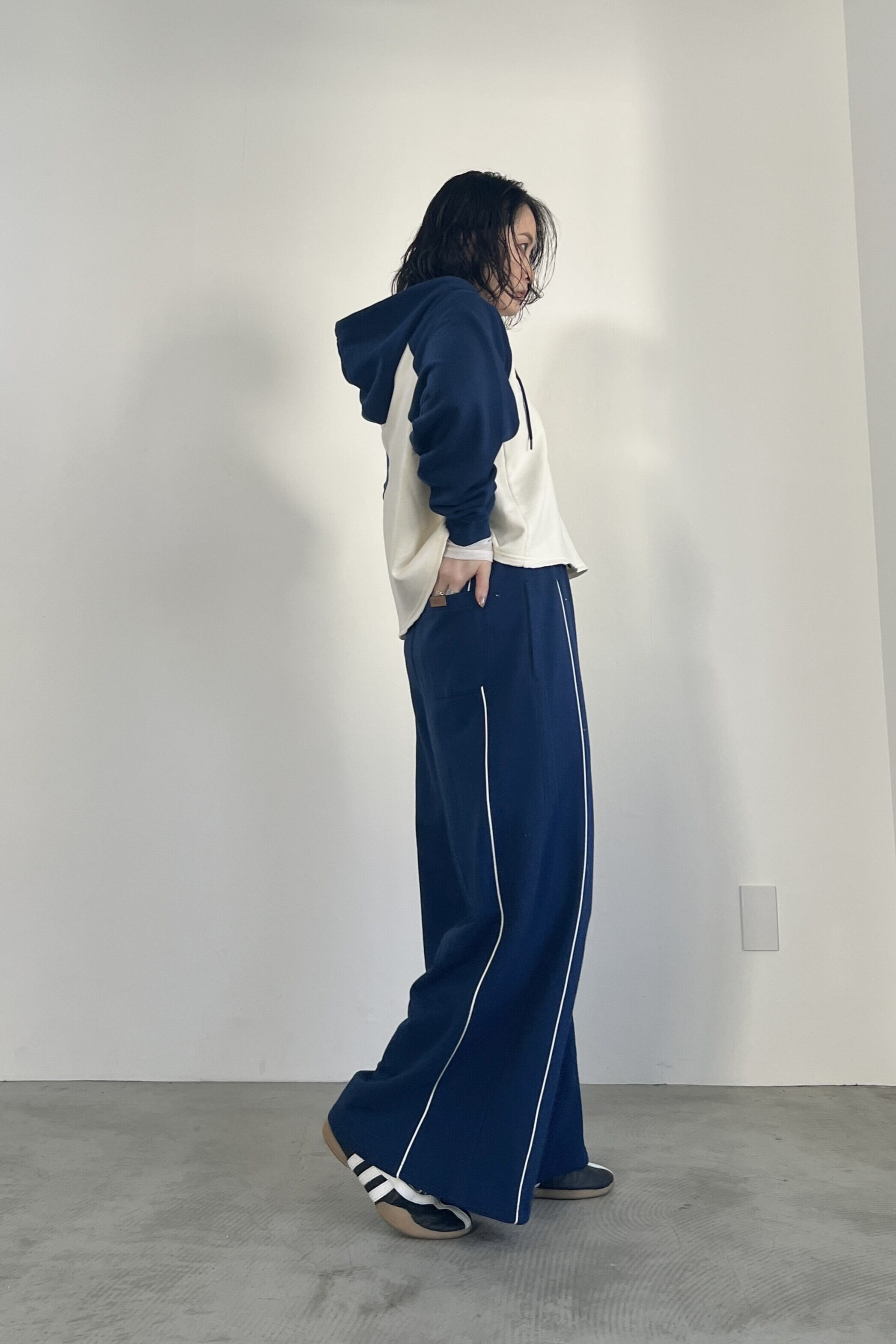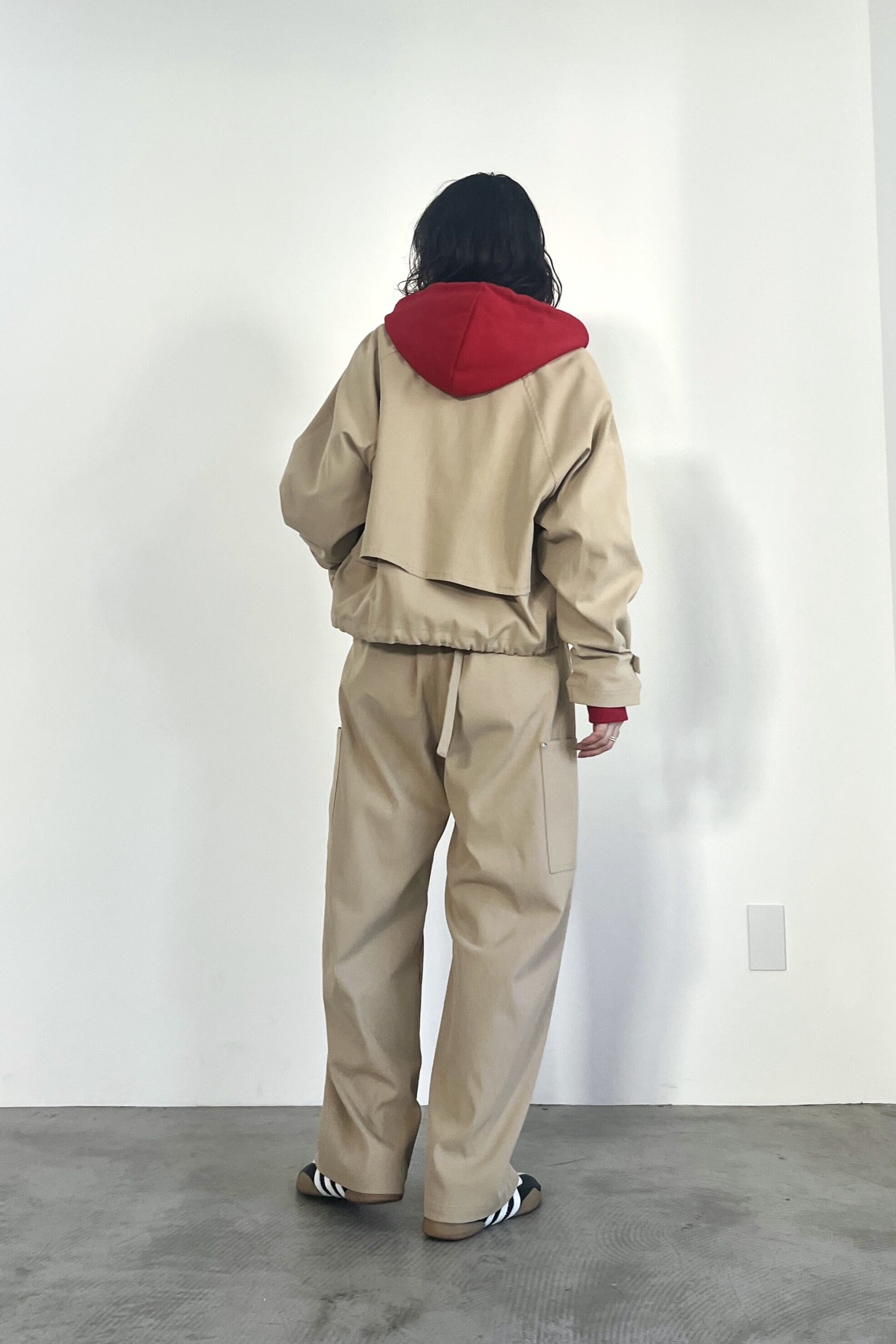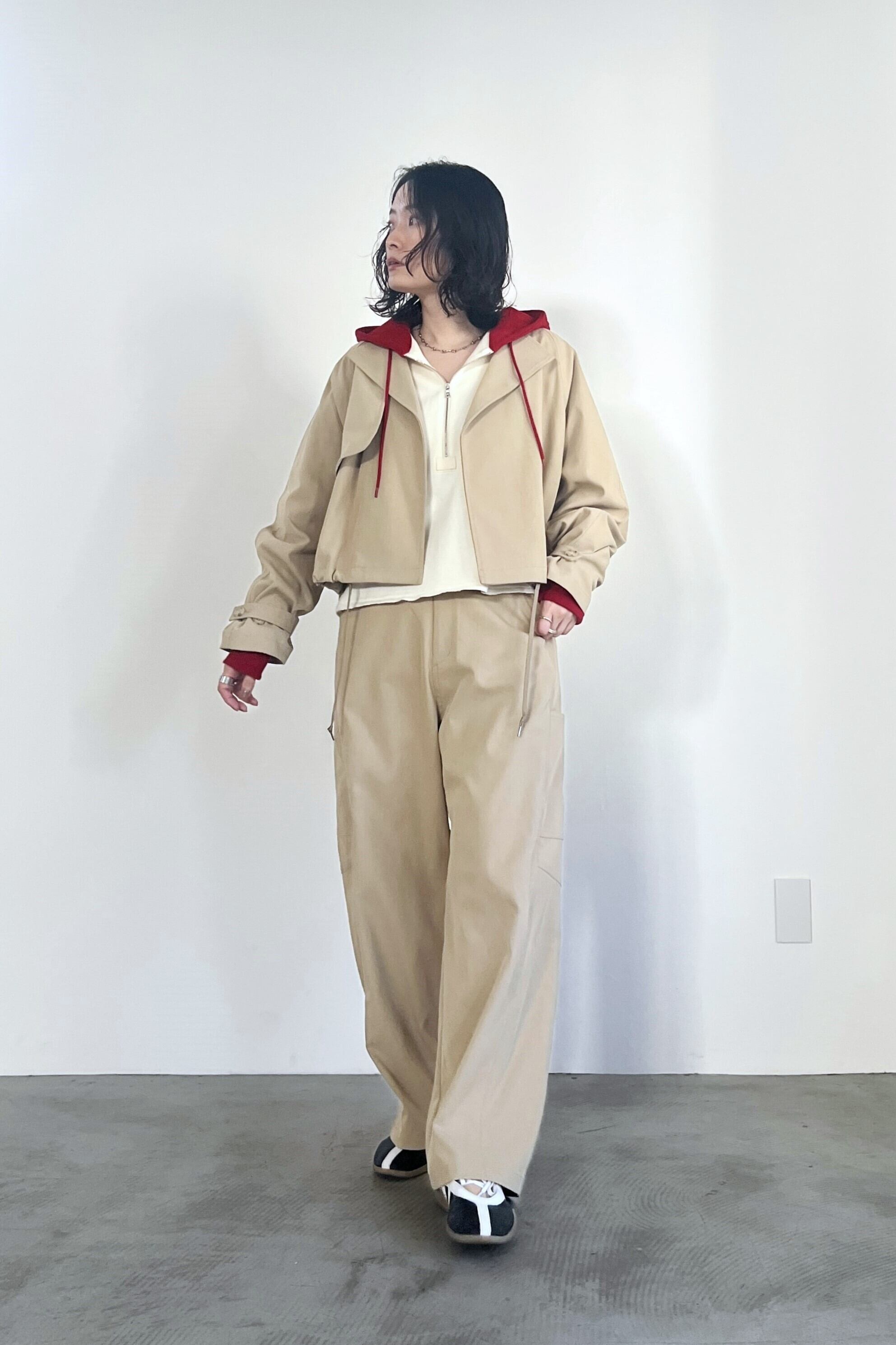 膨らみのあるベーシックな国産裏毛を使用したハーフジップフーディー。切りっぱなしの裾始末や、大胆なバイカラーの配色でカジュアルに仕上げました。ゆったりめのサイズ感ですが、短めの着丈なのでボリュームのあるボトムとの相性も◎
