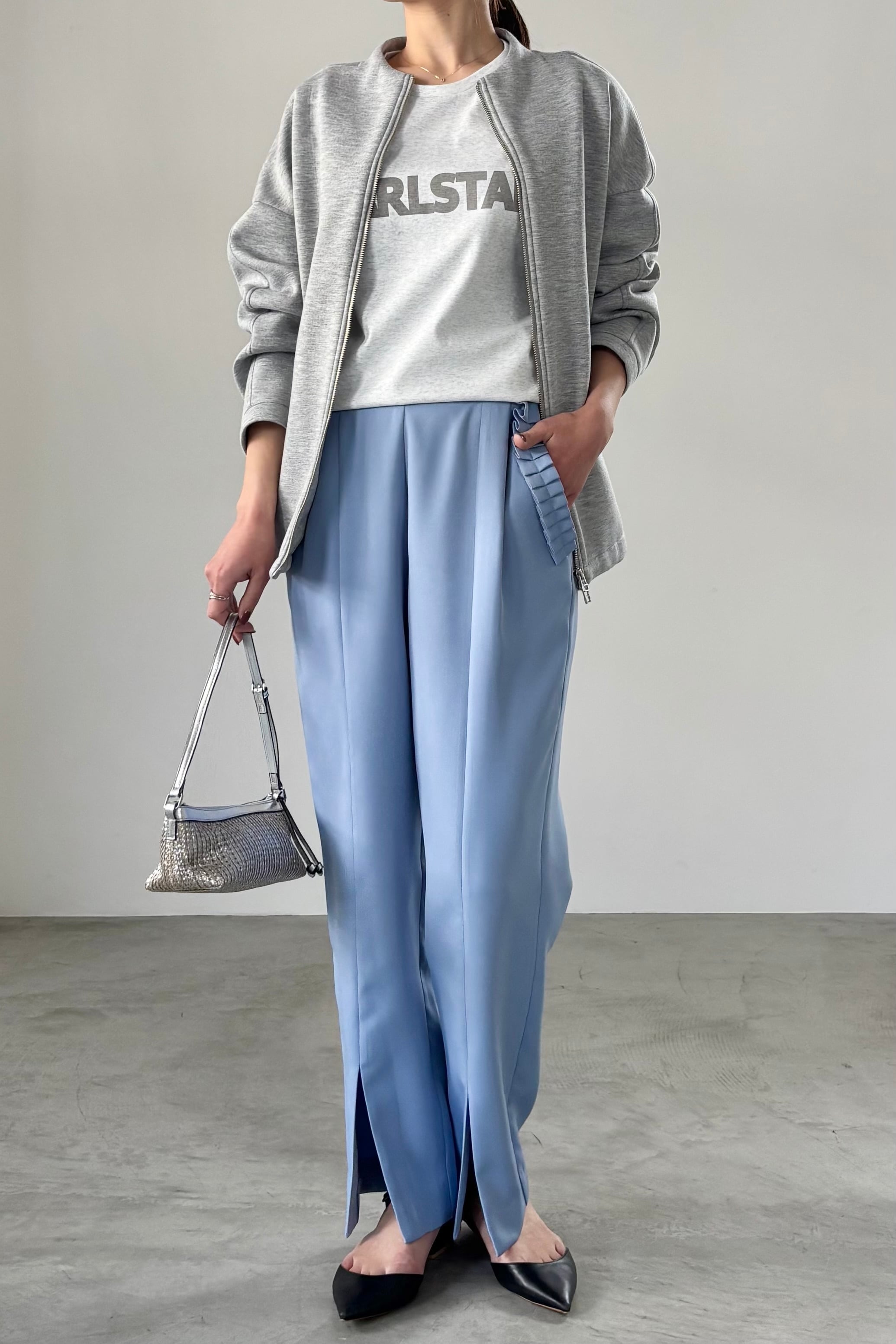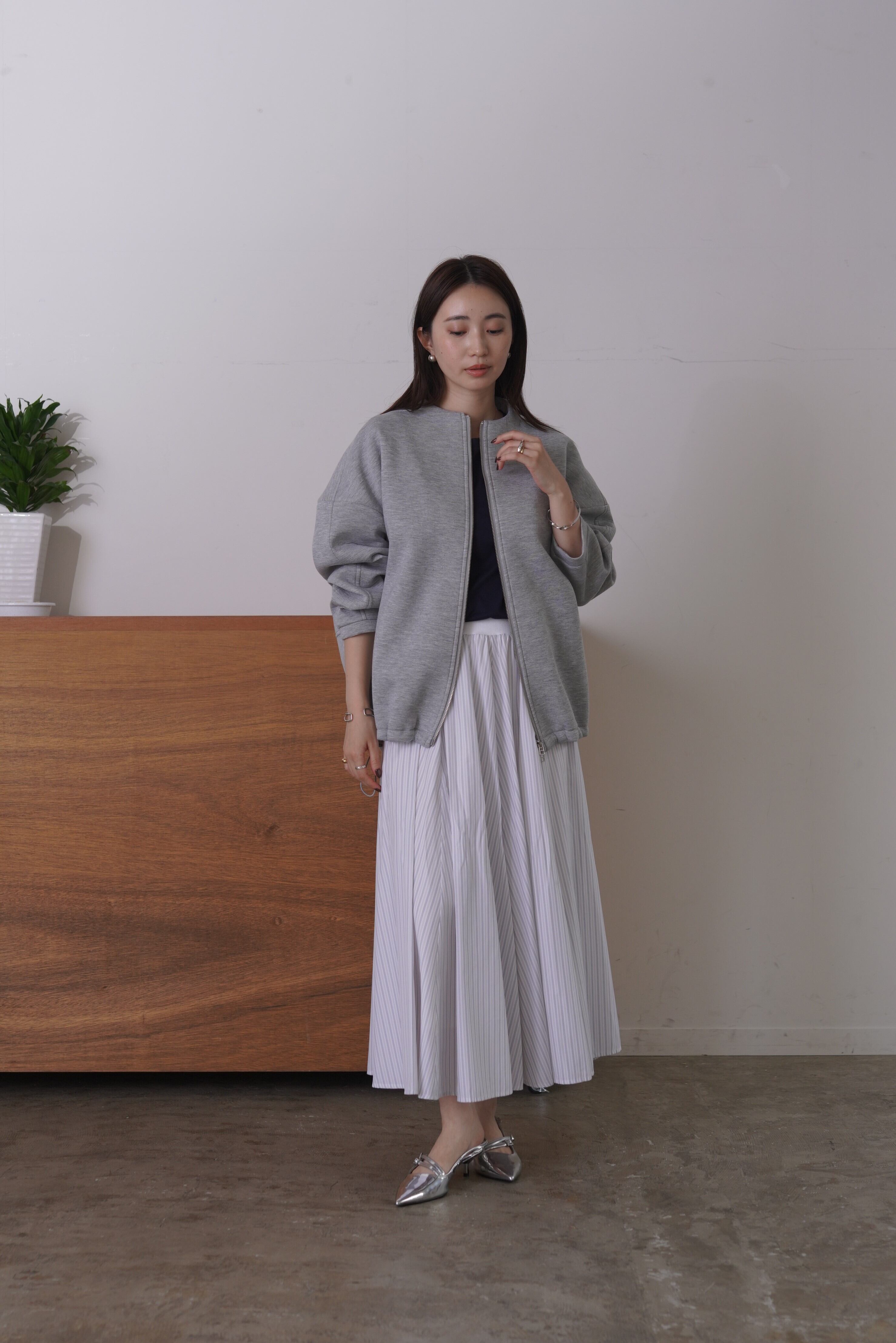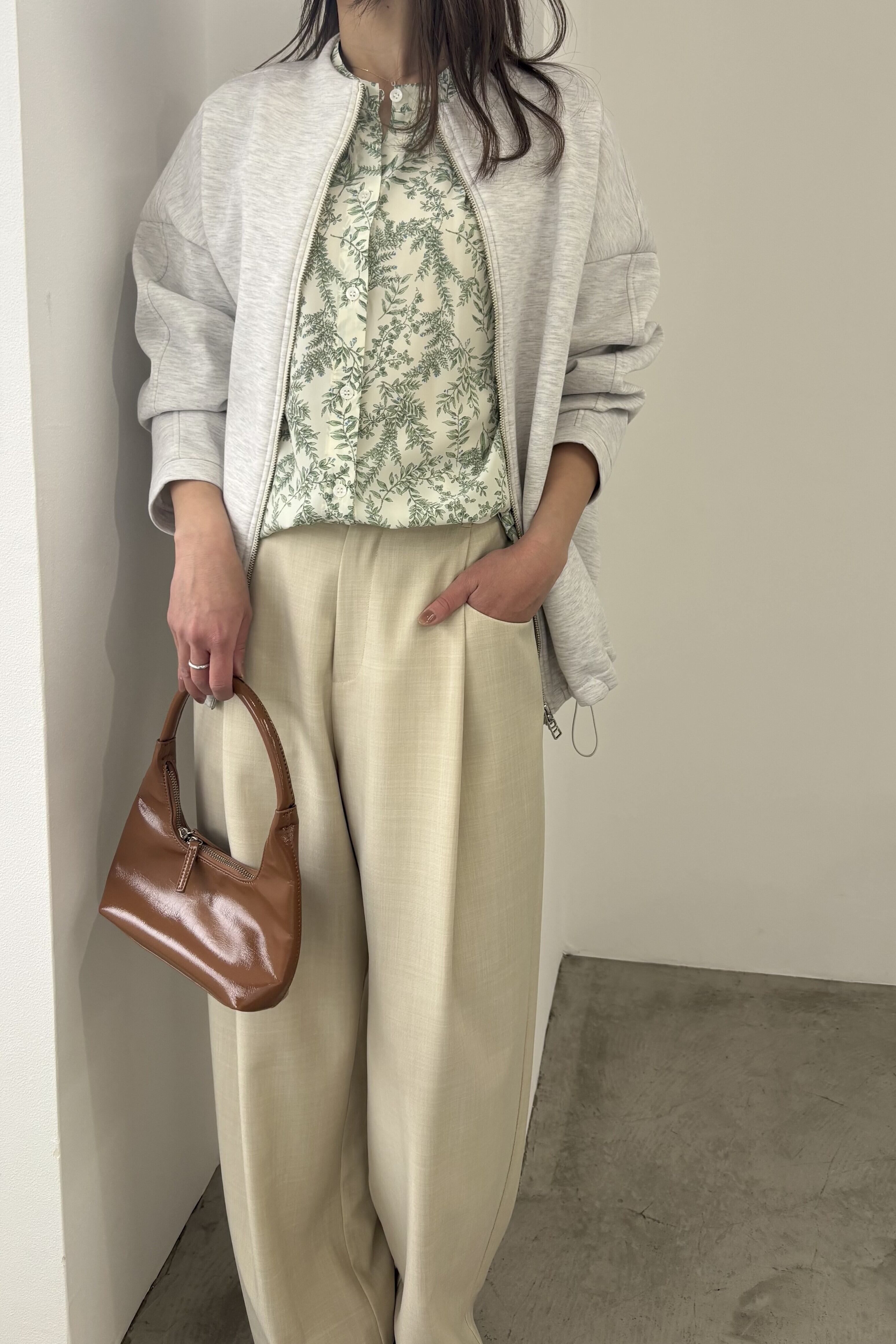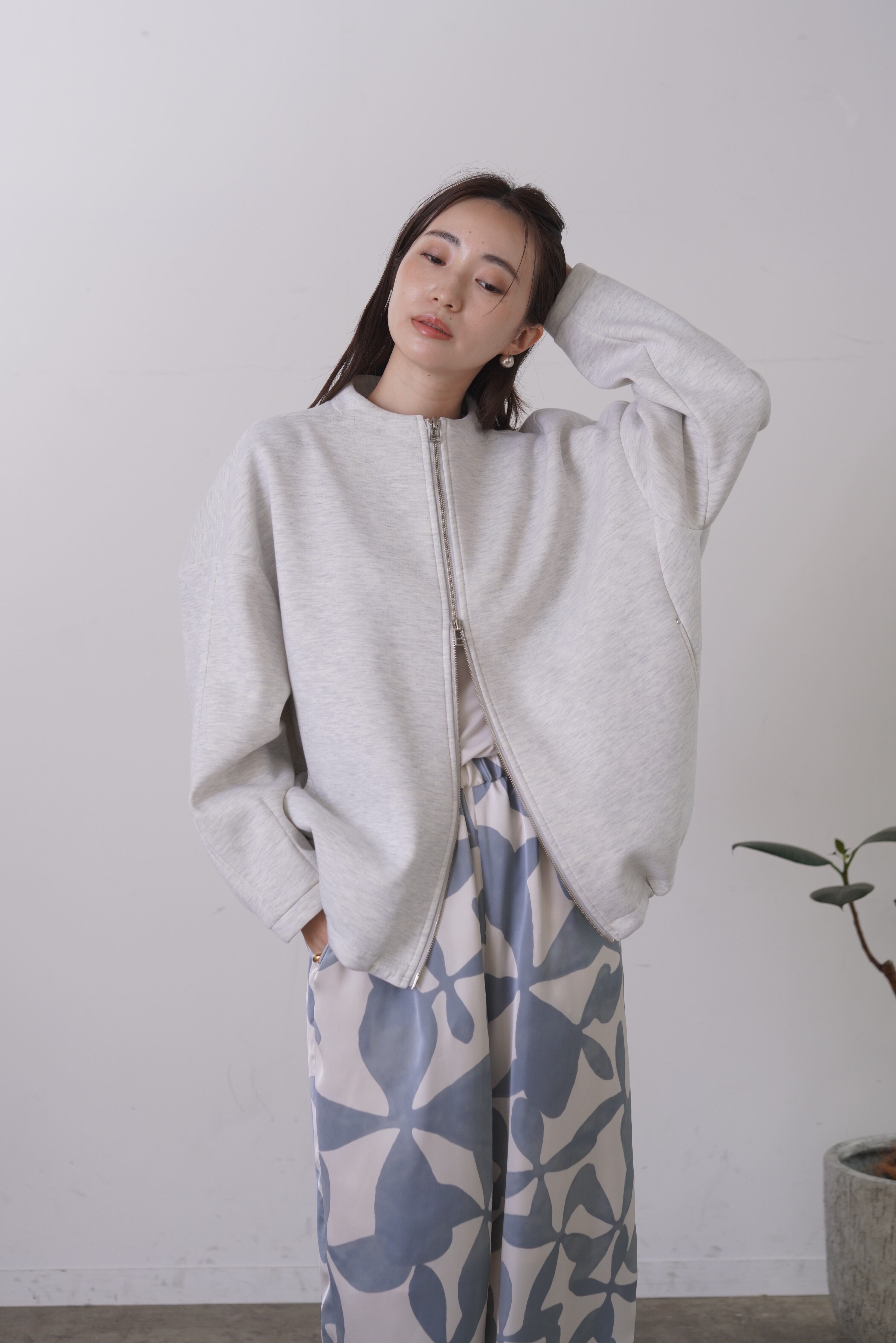 バックスタイルに切り替えを作り、コクーンシルエットに仕上げたオーバーサイズのノーカラーブルゾン。程よい厚みながら軽さのあるボンディングニット素材を使用しており、インナーを選ばないサイズ感なのでロングシーズン活躍するアイテムです。