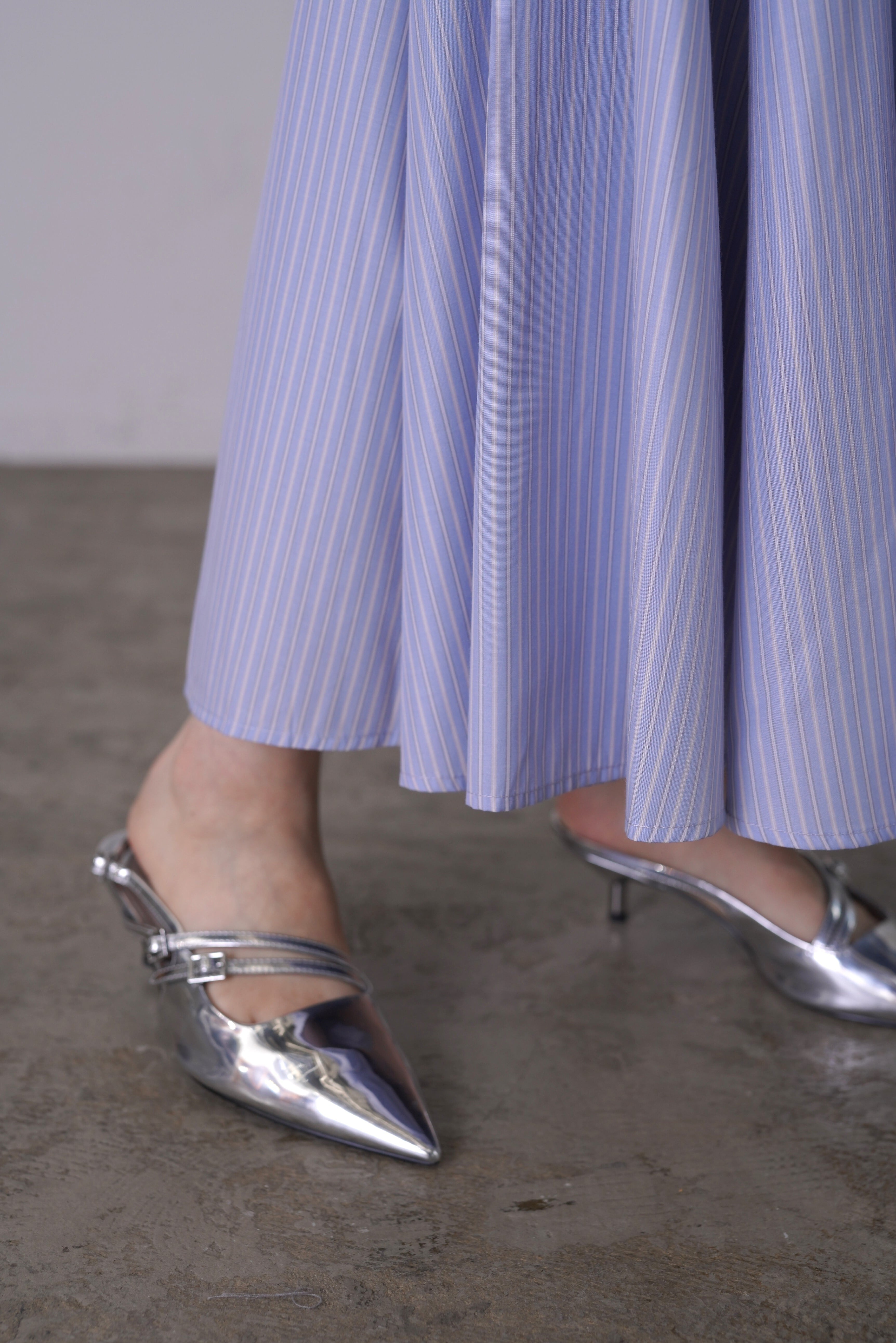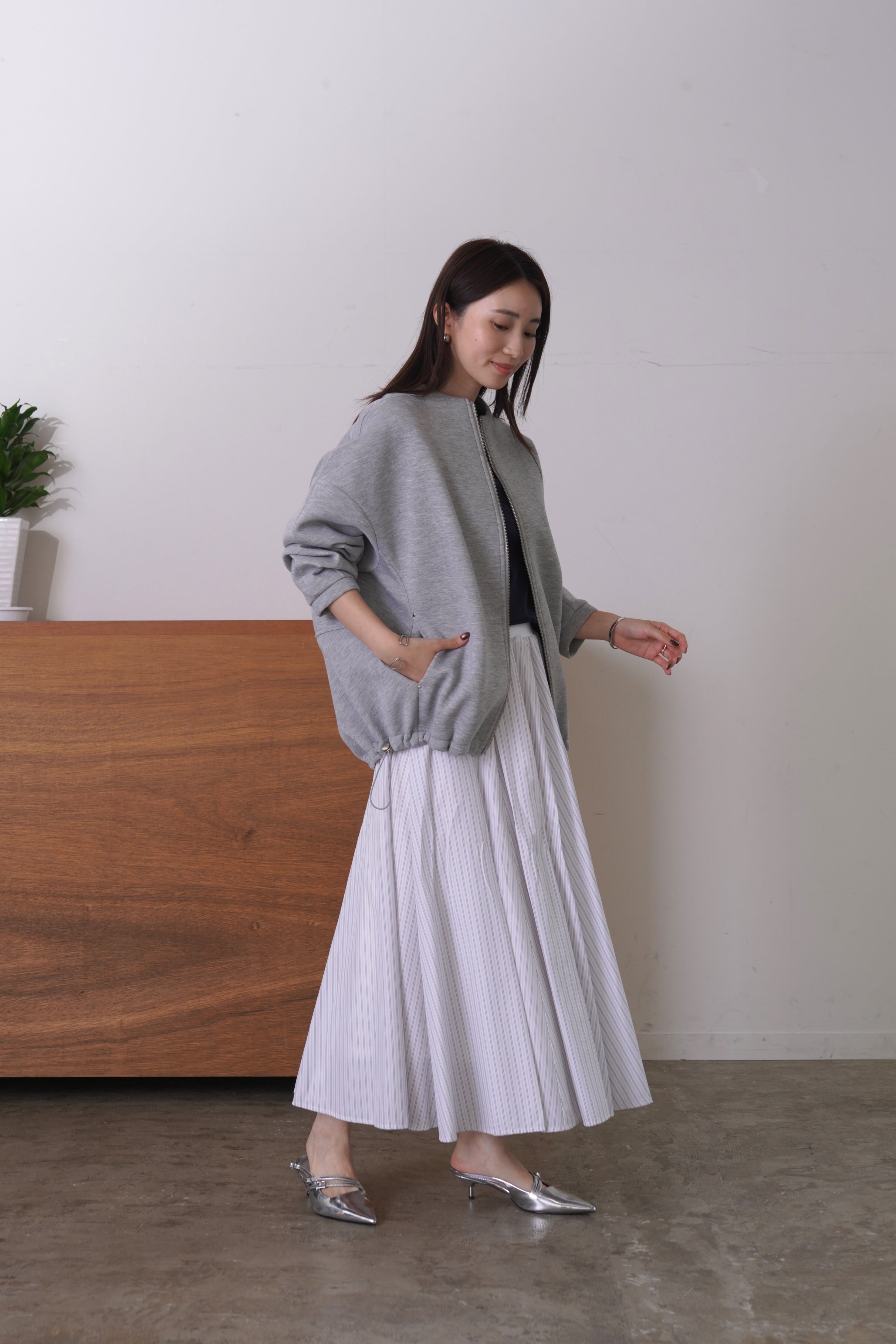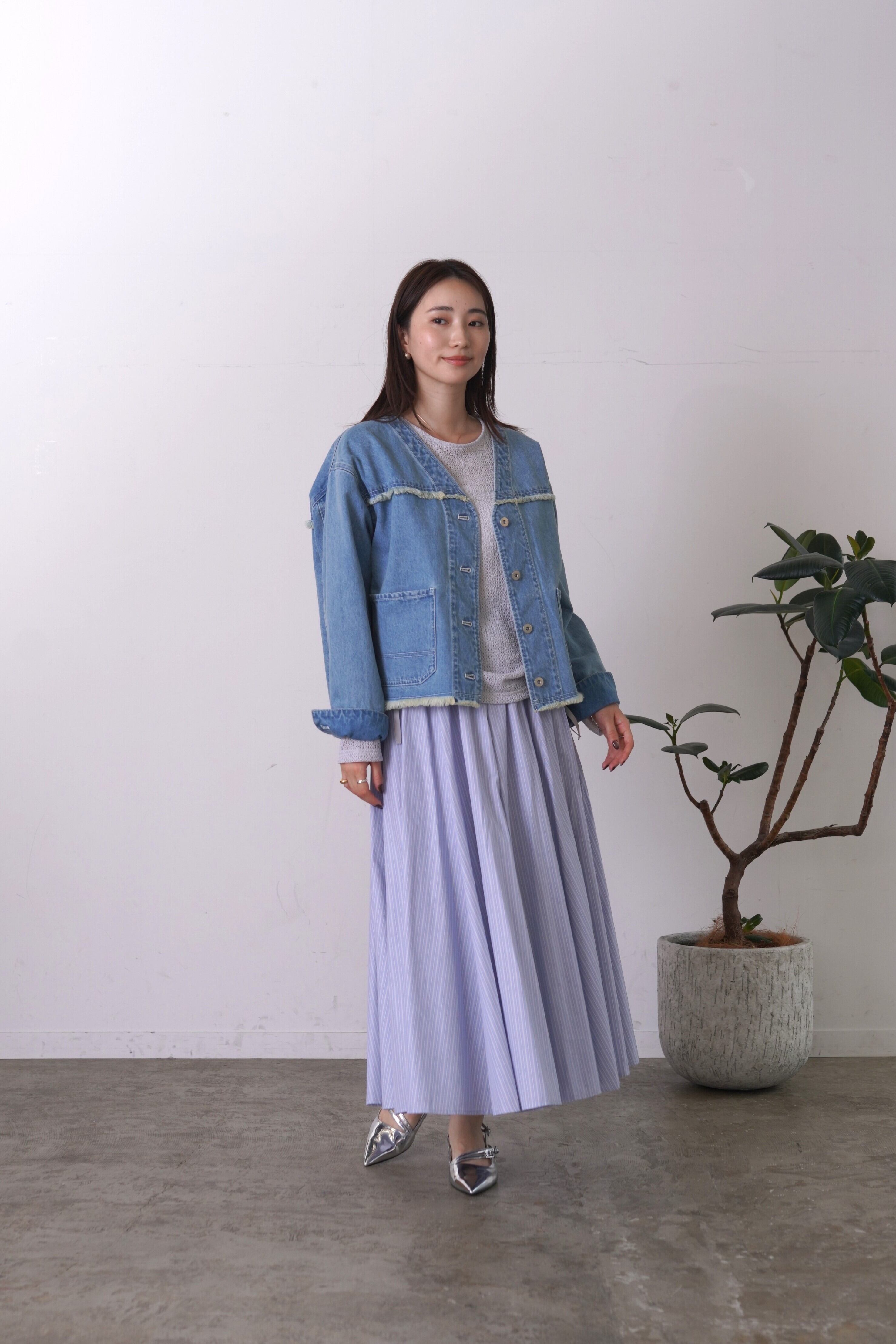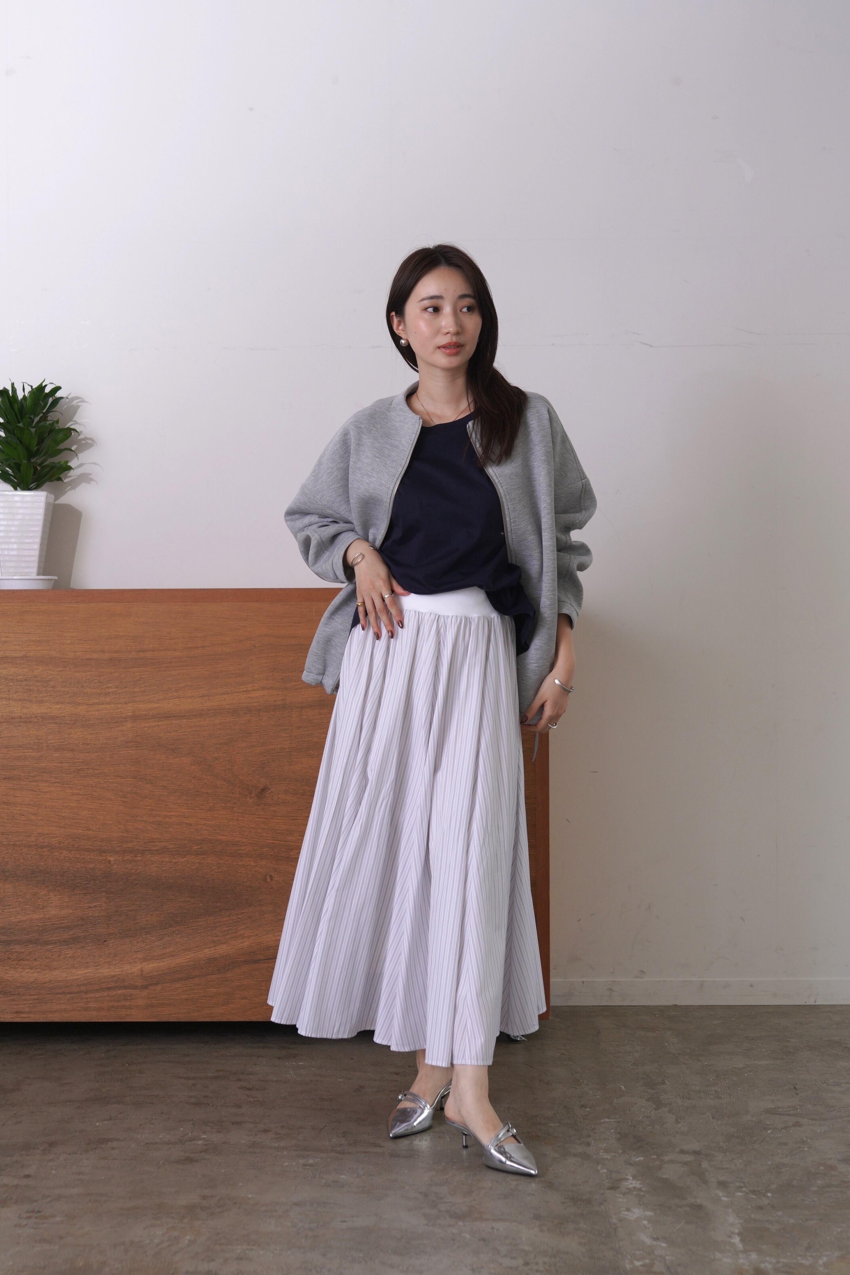 minkchair定番人気のウエストリブスカート。トラッドなマルチカラーストライプに分量多く使用しており、歩くたびに揺れる裾が女性らしい印象を与えてくれます。ウエストのリブを折り返して着丈の調節が可能です。