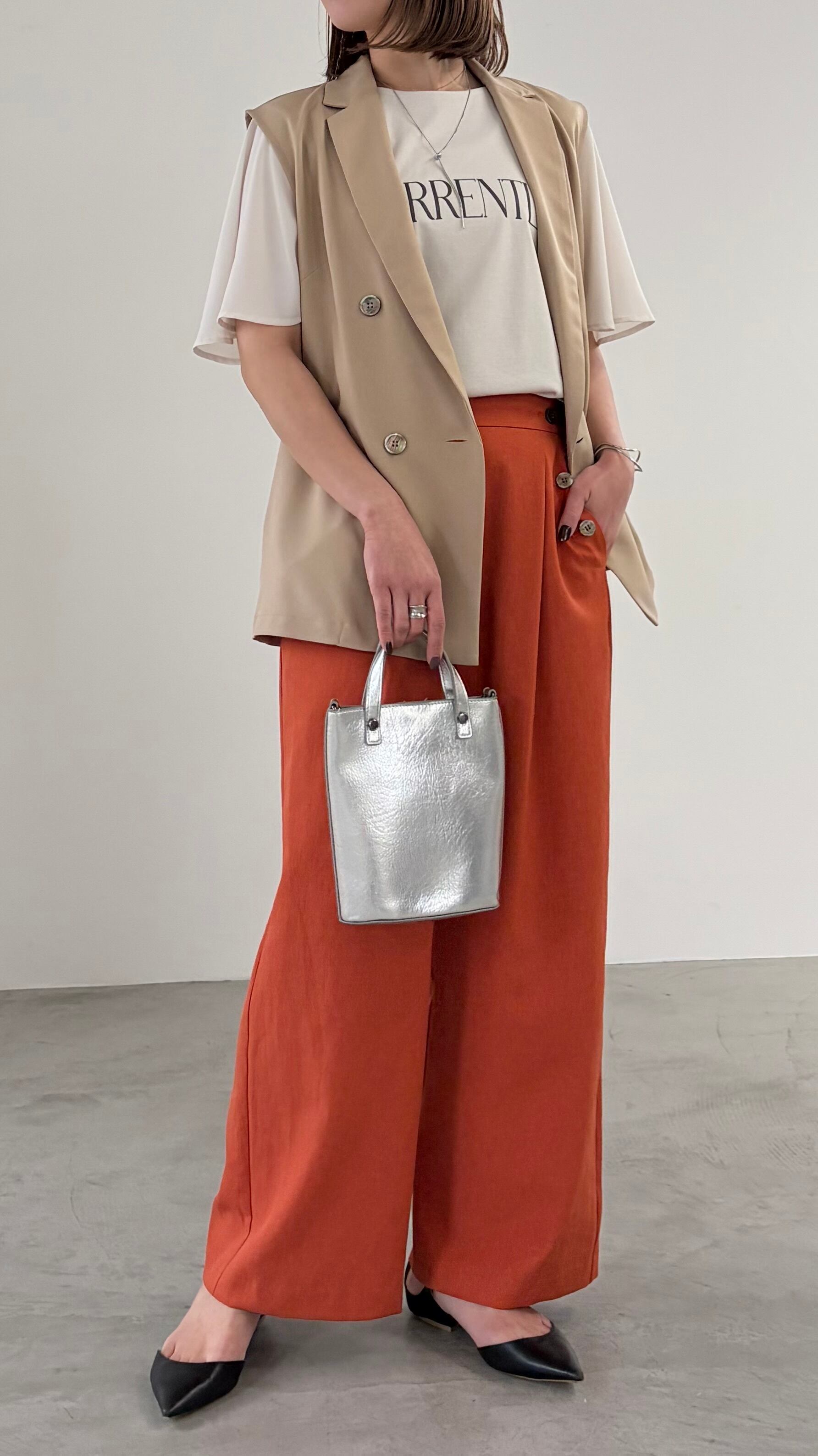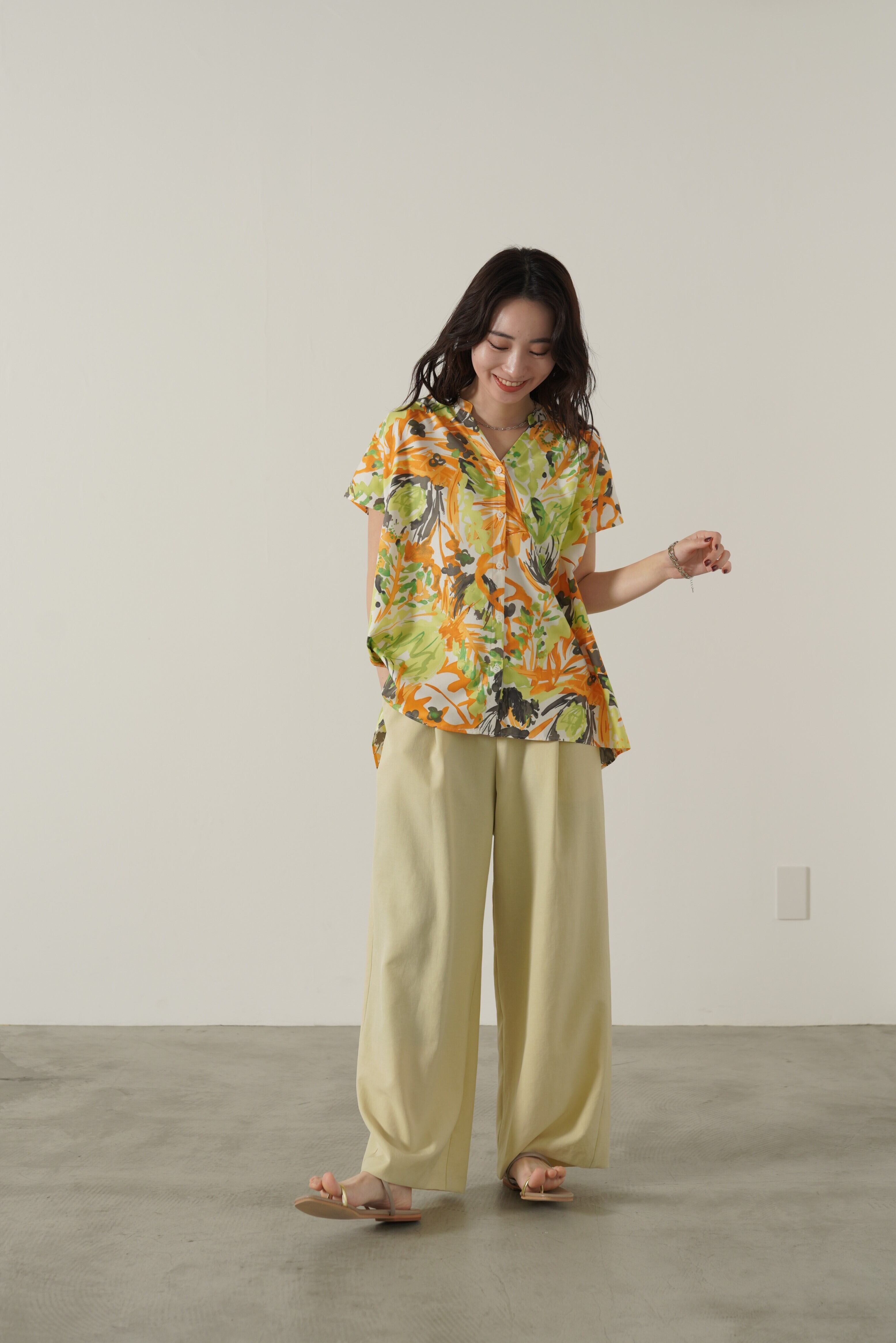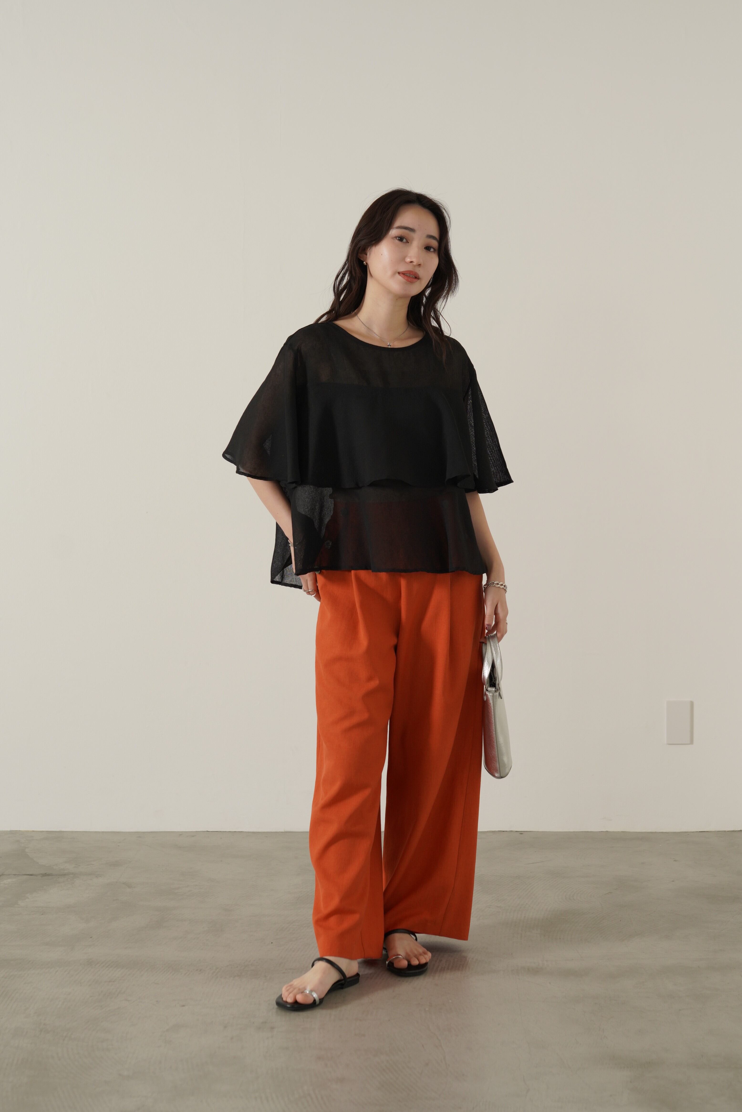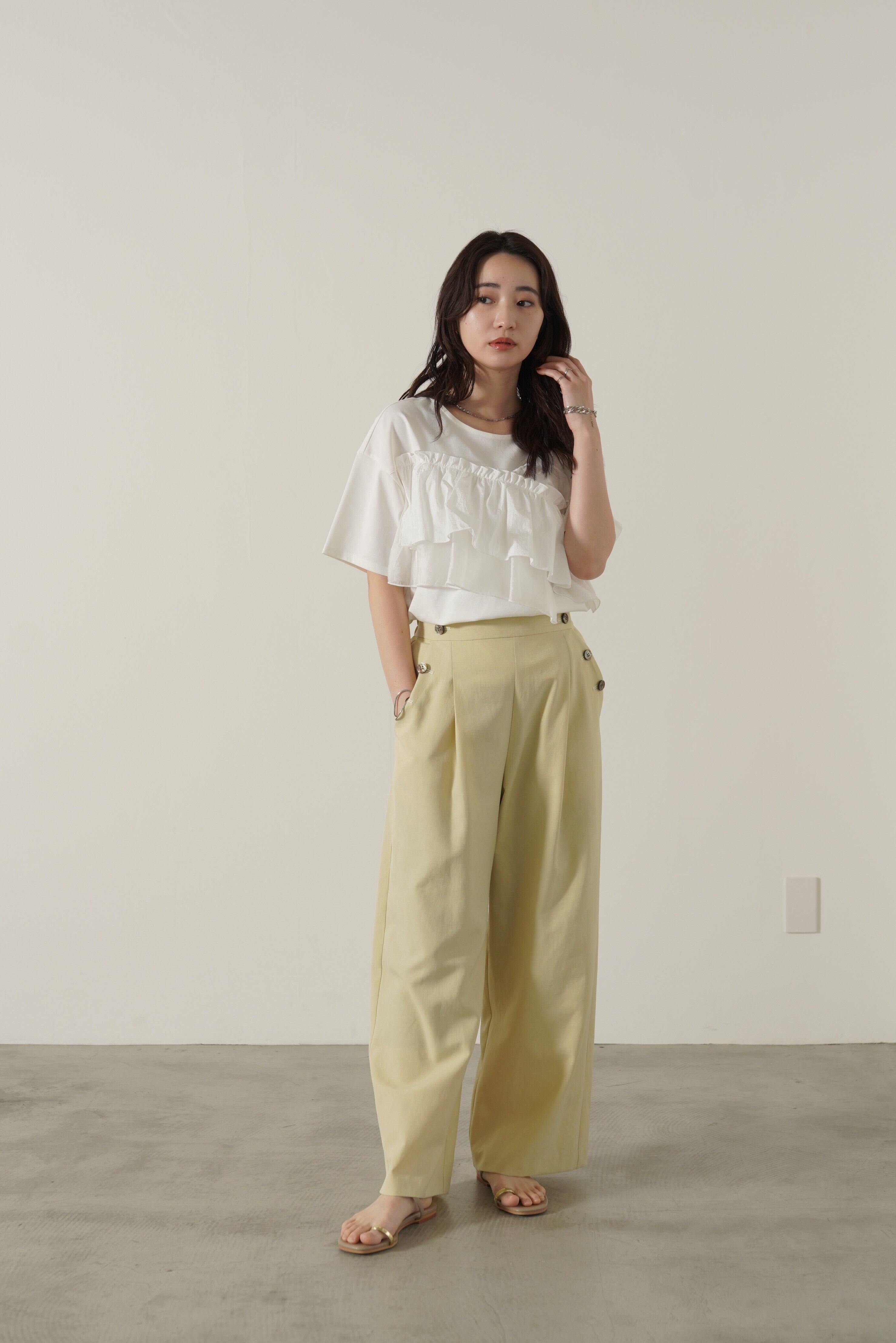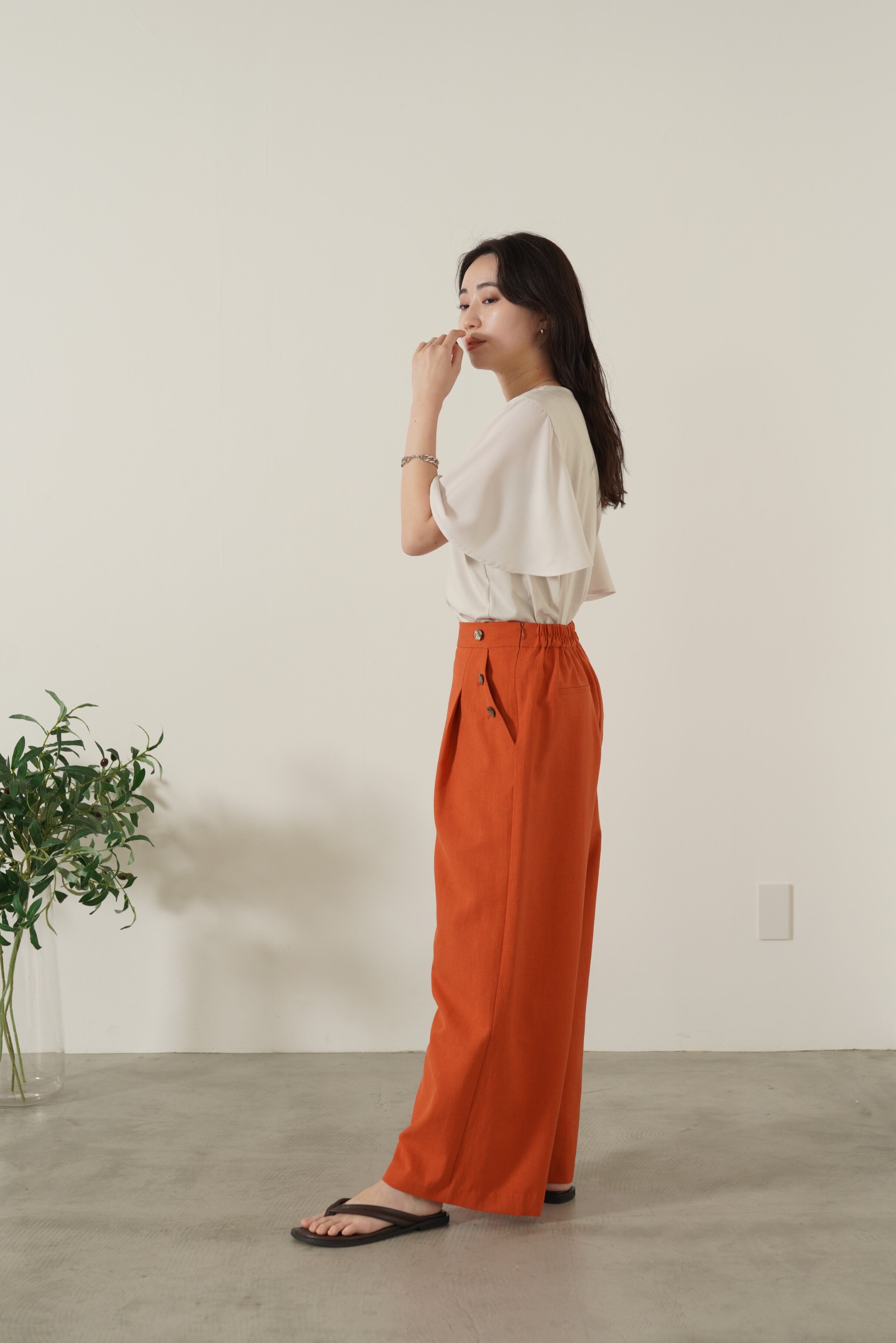 マリンテイストのボタンディテールが目を惹く、リネン混で柔らかい生地感のタックパンツ。ウエストから裾までストンとしたシルエットでスタイルアップ効果も抜群です。シンプルスタイリングになりがちなシーズンにもぴったりのパンツです。